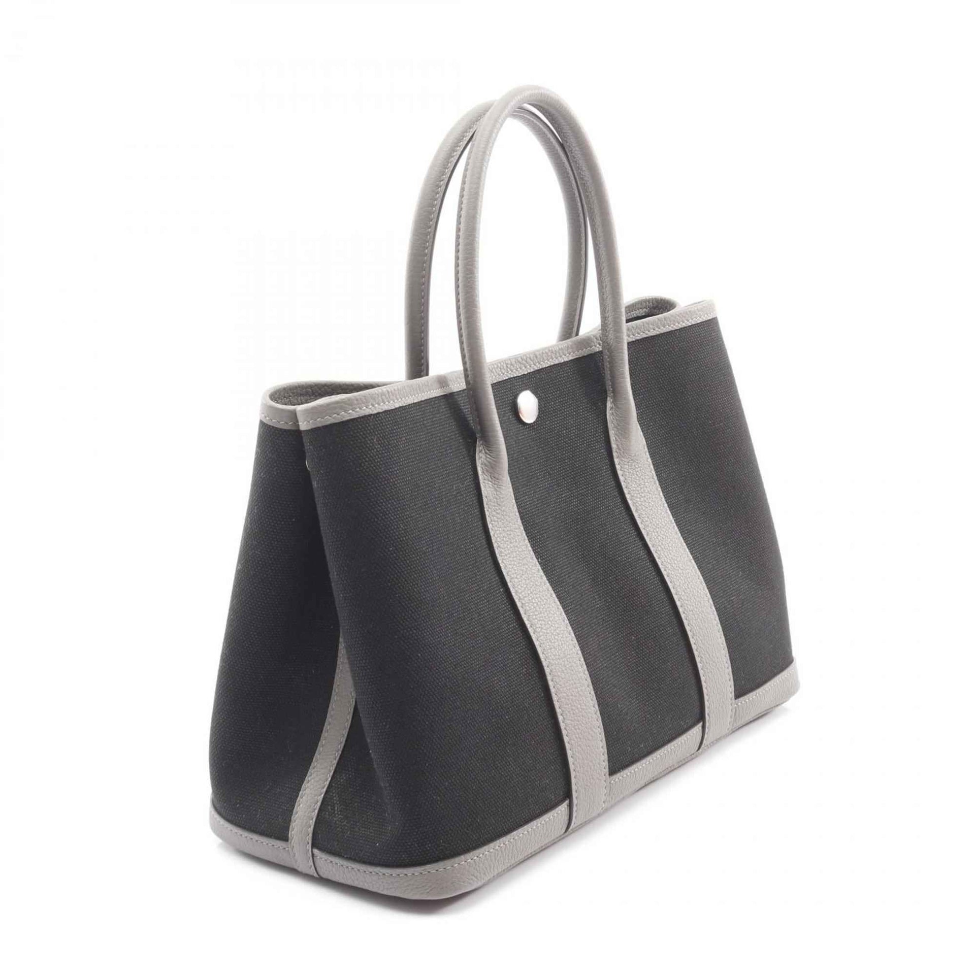 Hermes Hermès Garden Party TPM Tote Bag, Canvas and Leather, Negonda Toile Militaire, Women\'s, Black Gray, Grimeyer