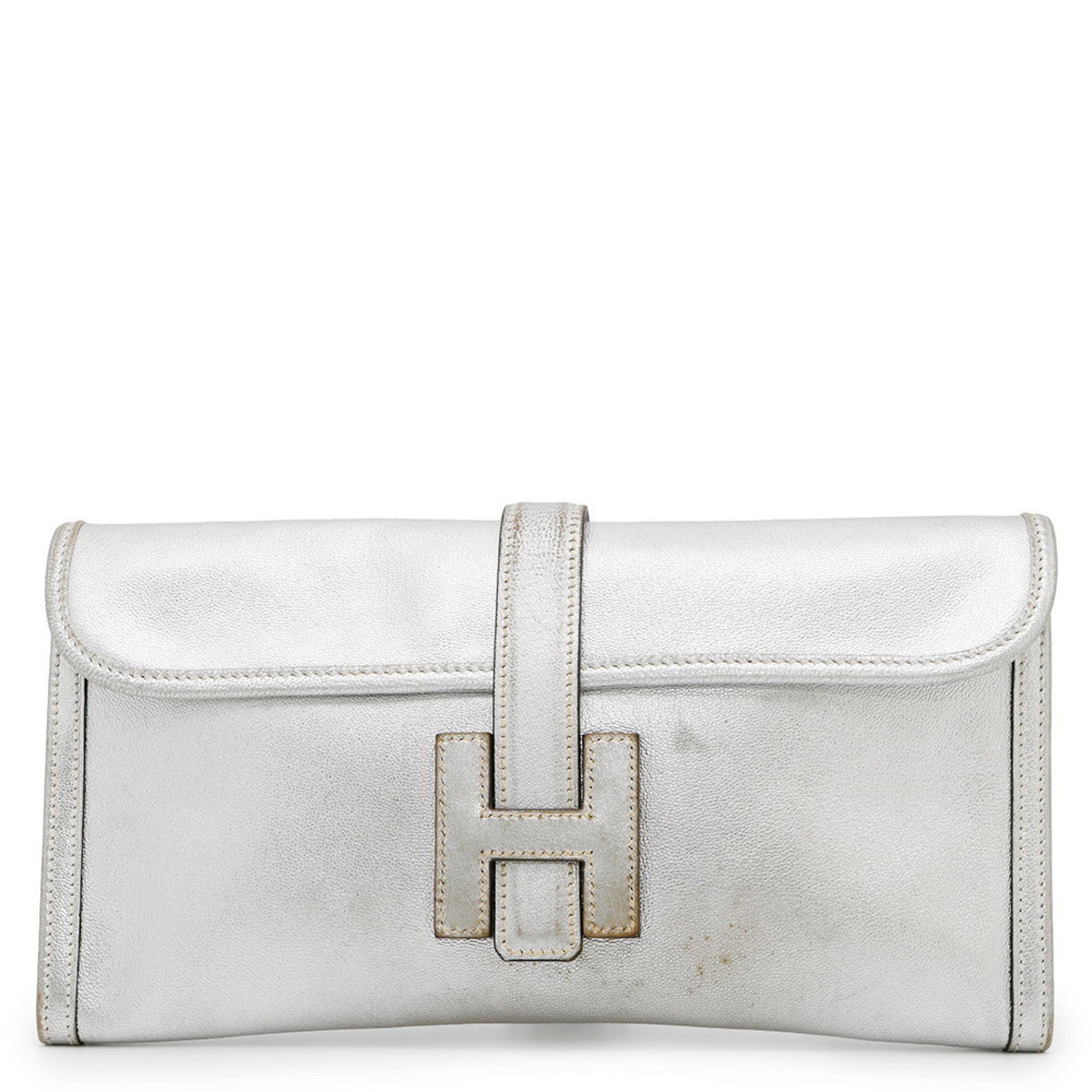 Hermes Hermès Jige Elan Silver Chevre Mysore Clutch Bag, H Stamp, Athens Olympic Limited Edition