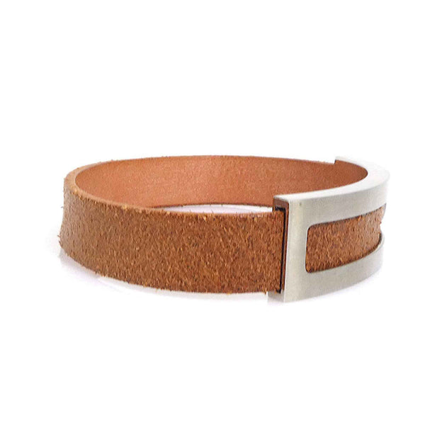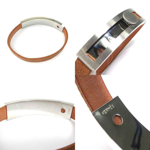 Hermes Hermès Puspus Bangle Bracelet, Metal, Leather, Silver, Brown, Women's, W1300a