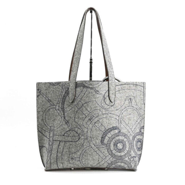 HERMES Karimi MM Tote Bag, Felt and Leather, Gray, Men\'s/Women\'s, #□L