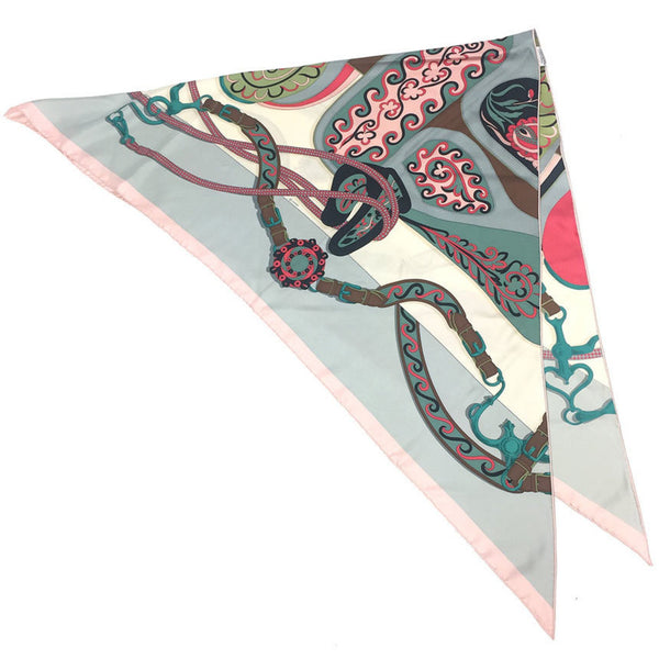 HERMES POINTU TWILL FESTIVAL DES AMAZONES 571797S 02 Triangle Scarf/Bandana in Black/Gris Perle/Crème. A preserved Hermès scarf/muffler.