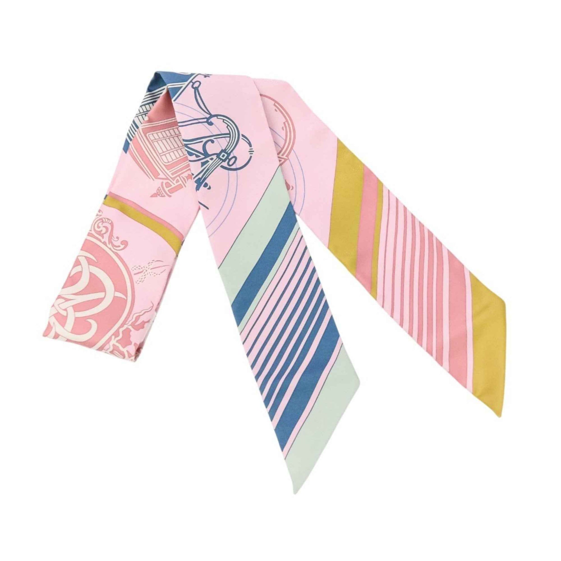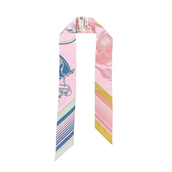 HERMES Twilly Ex-Libris Silk Scarf/Muffler in Rose Pale Ocher Vert for Women