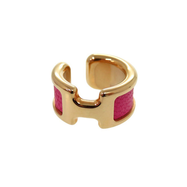 Like new Hermès Olympe PM ear cuff, single ear, leather, plated, pink, 0395 HERMES
