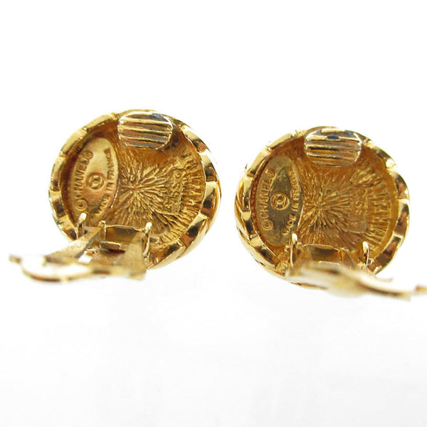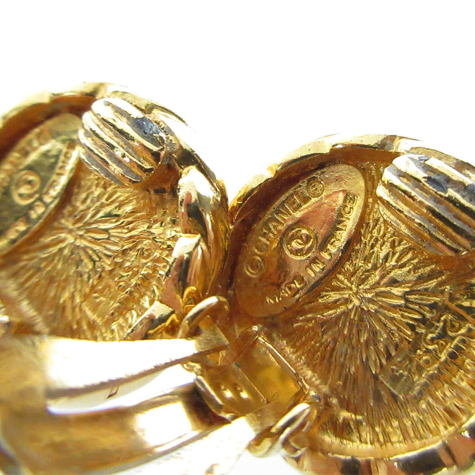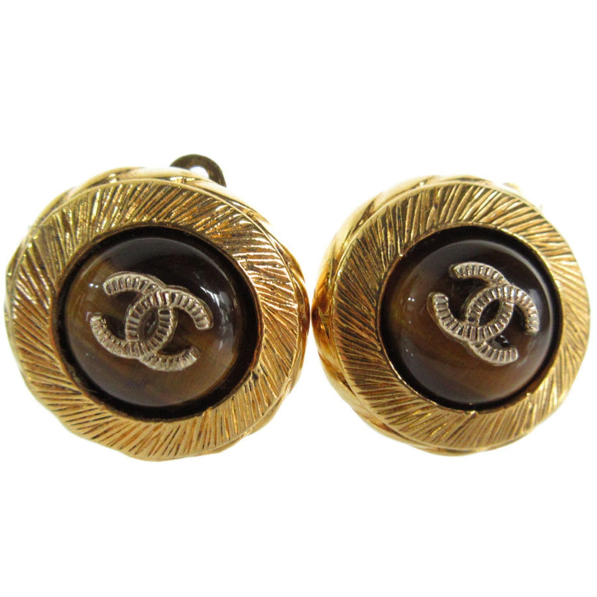 CHANEL Earrings Coco Mark Metal Stone Gold Brown Women\'s s0572k