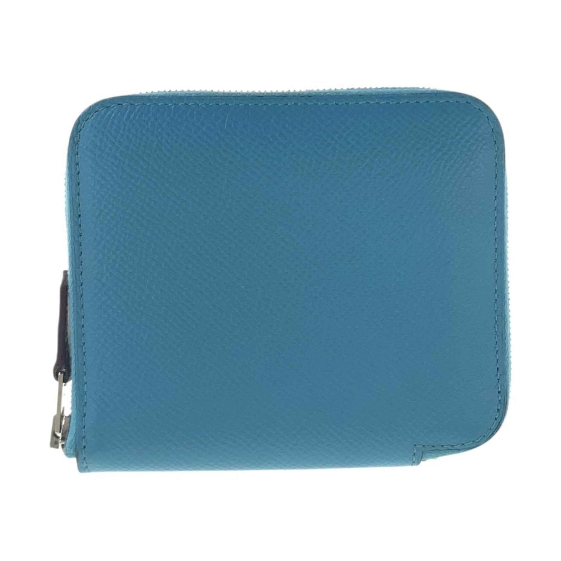 HERMES Azap Compact Silkin Blue with Silver Hardware, Leather/Silk Folding Wallet, Coin Purse, D Stamp, Women\'s
