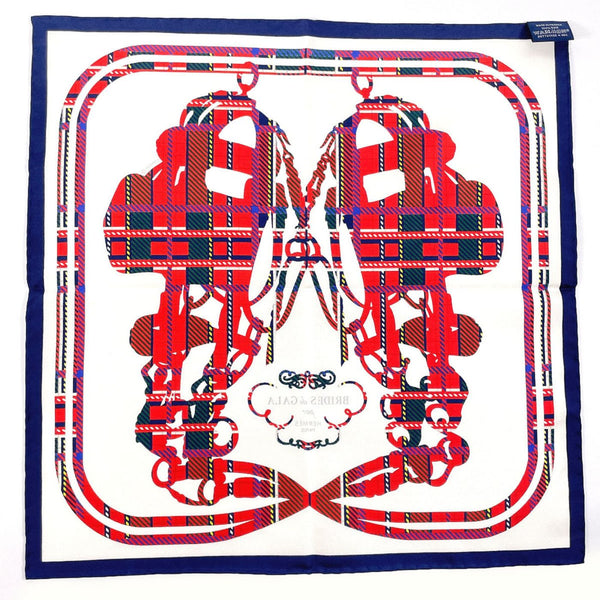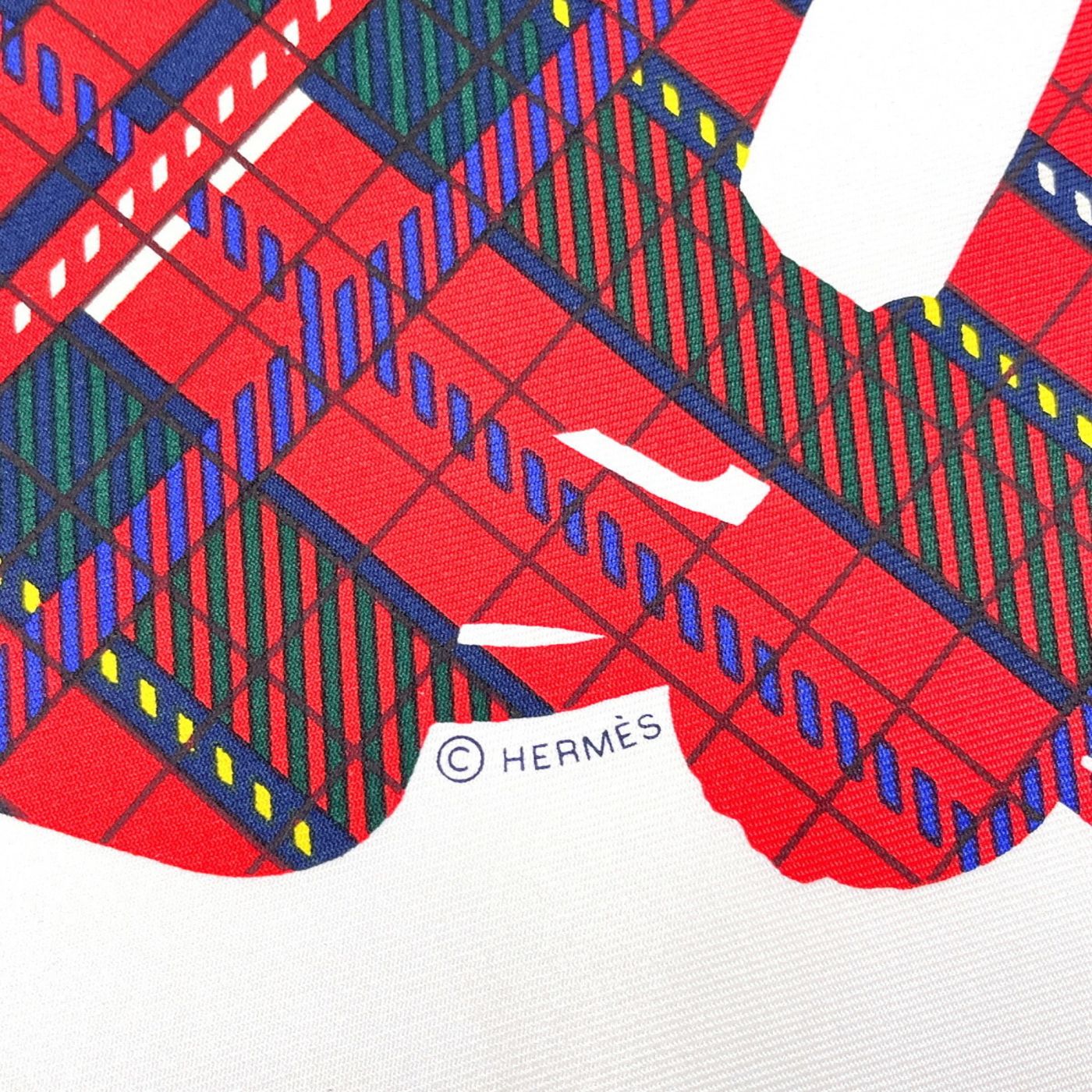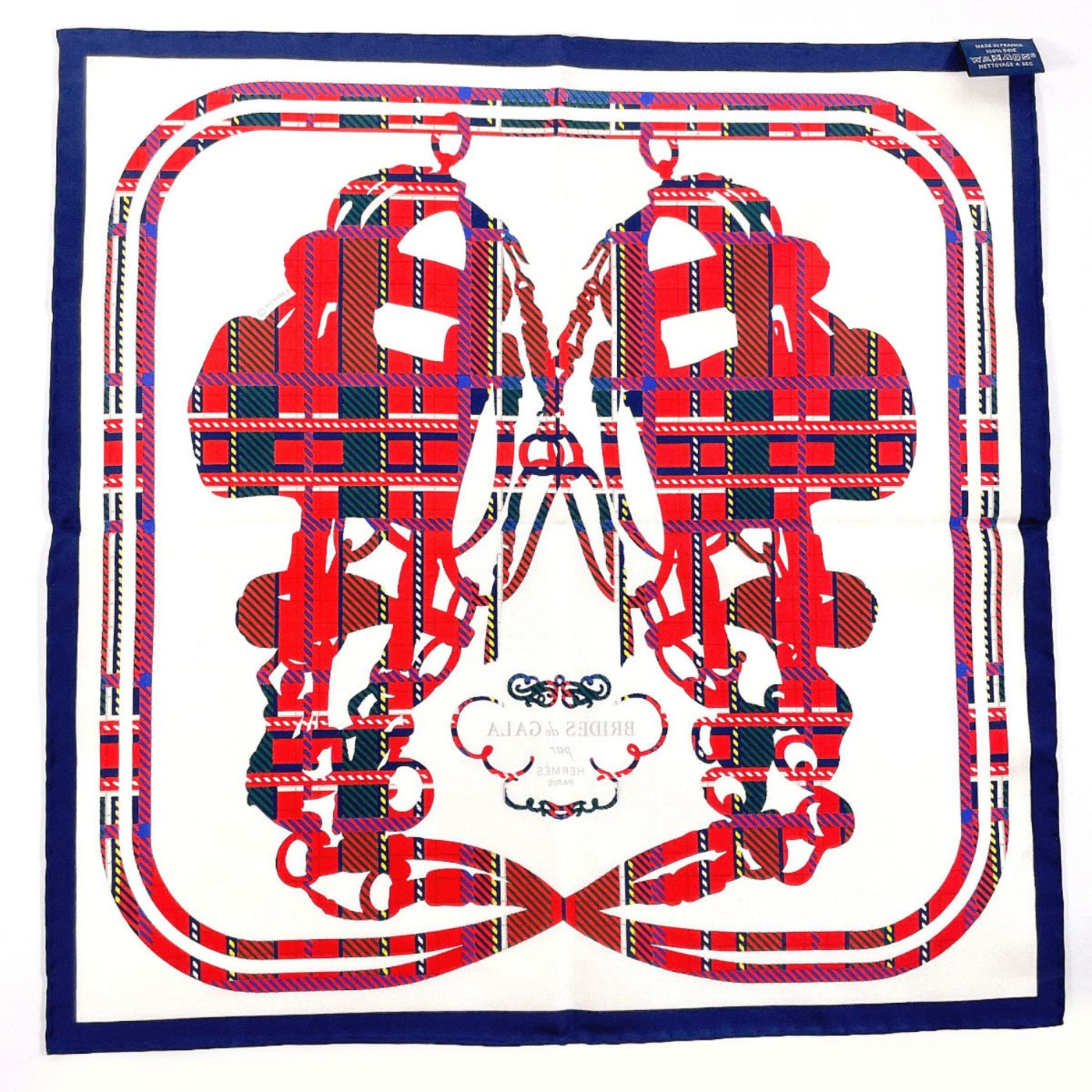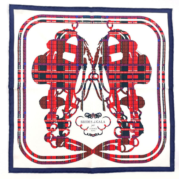 HERMES Gavroche 45 BRIDES de GALA Tartan Scarf Muffler Silk White Women\'s N4127095
