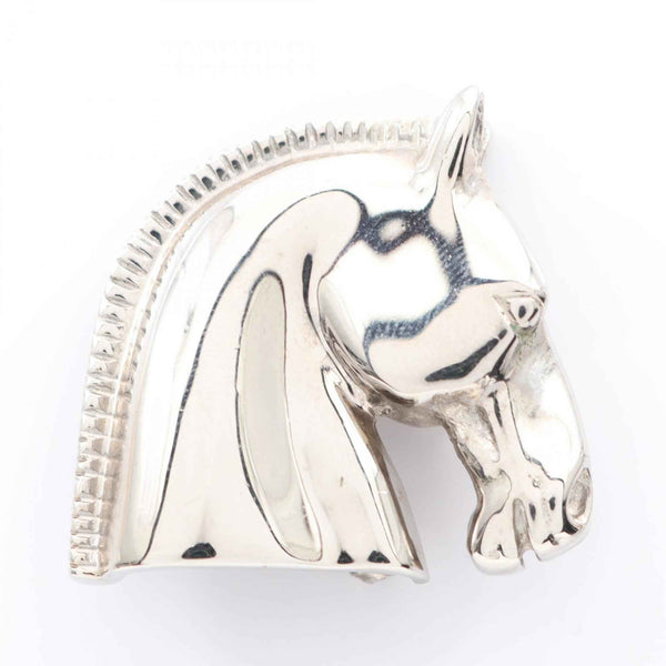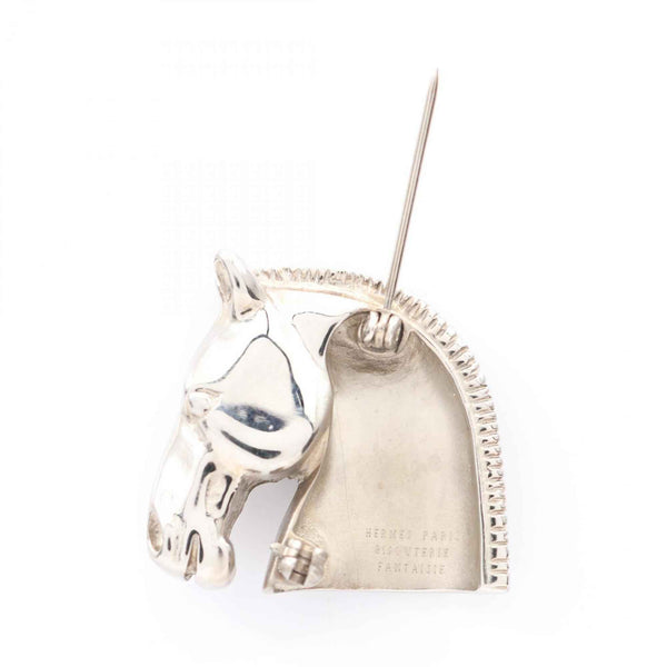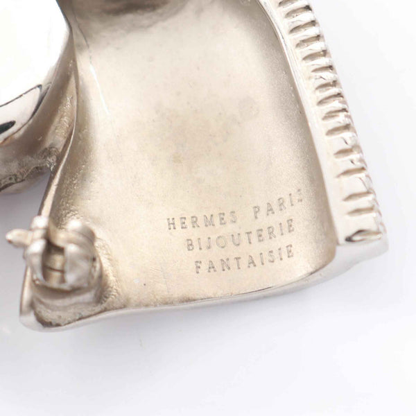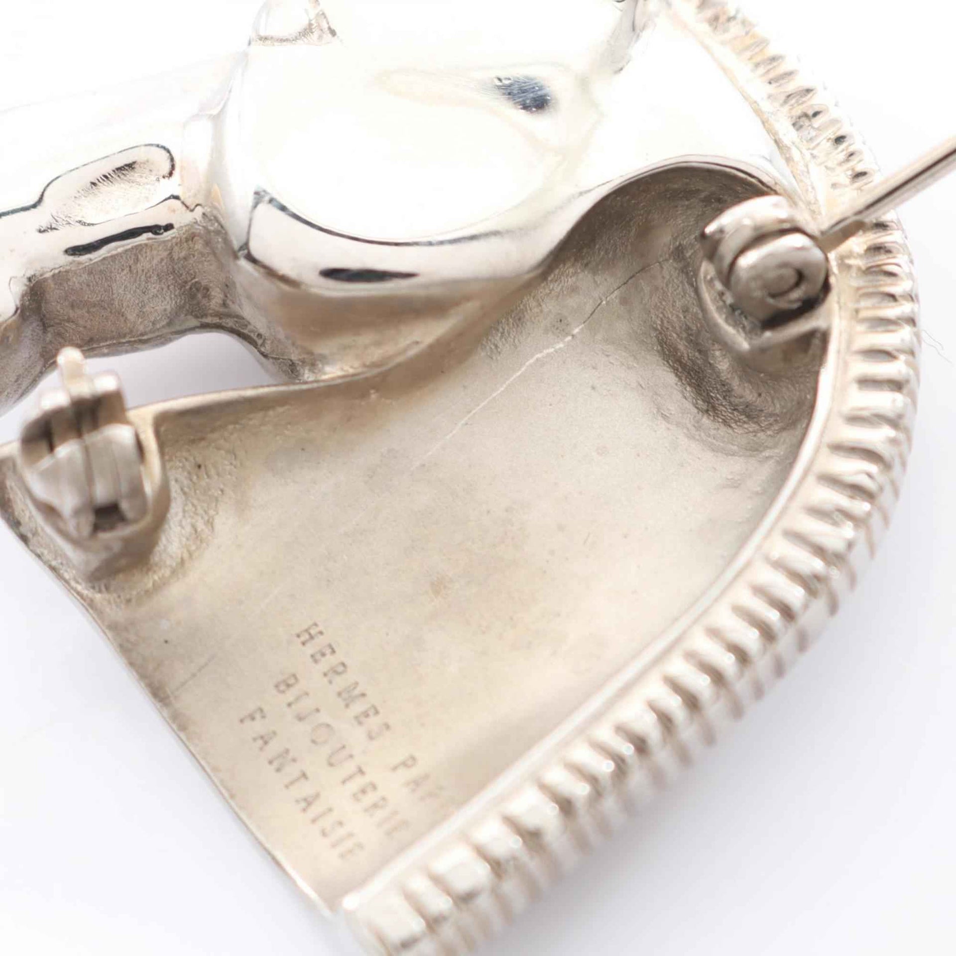 Hermes Hermès Horse Head Brooch, Stainless Steel, Silver, for Women