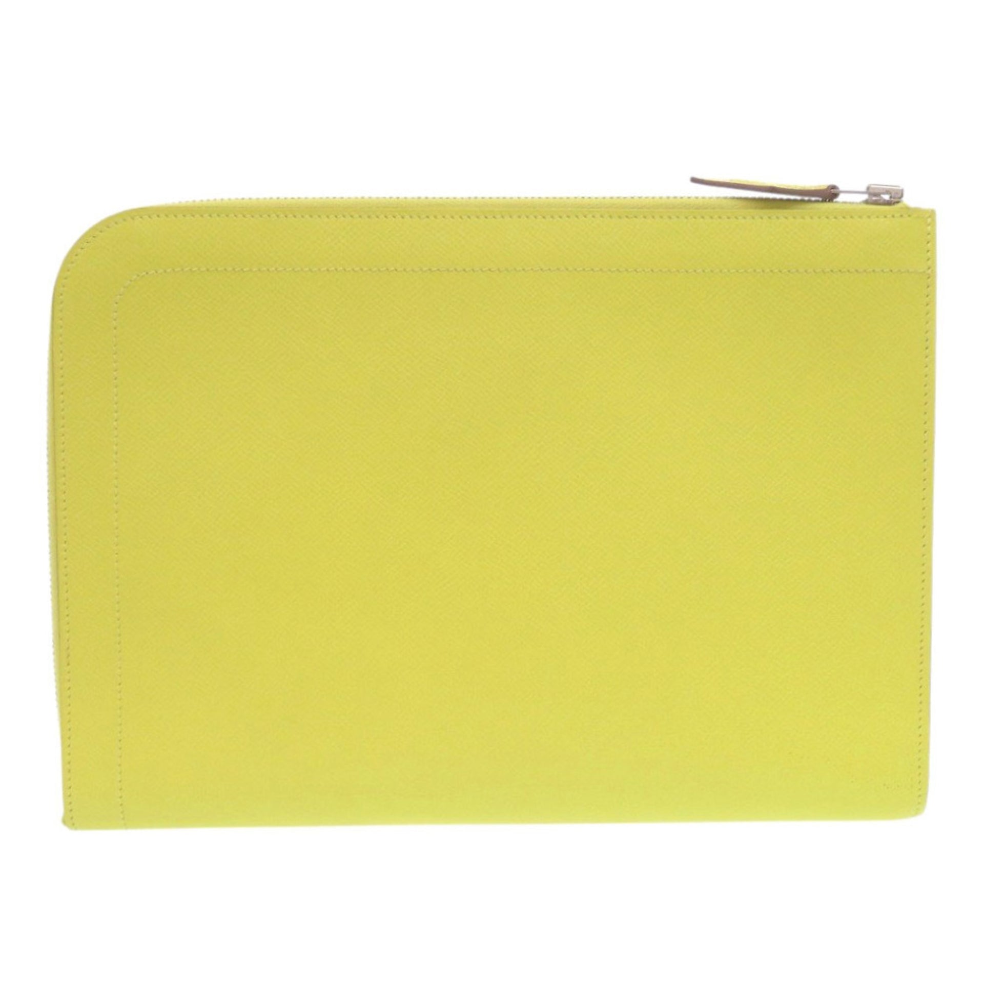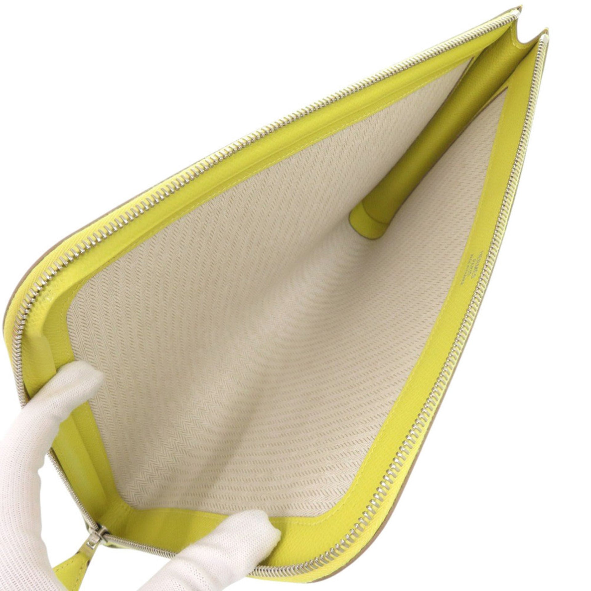 Hermès Zip Tablet Epsom Leather Lime A Stamp (2017 Model) Yellow Clutch Bag 0062 HERMES