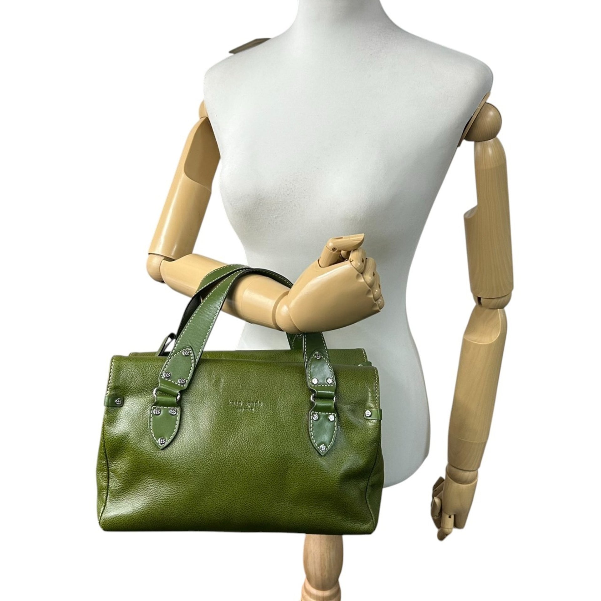 Kate Spade leather handbag, mini Boston bag, green with rhinestones, women\'s, kate spade new york