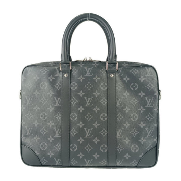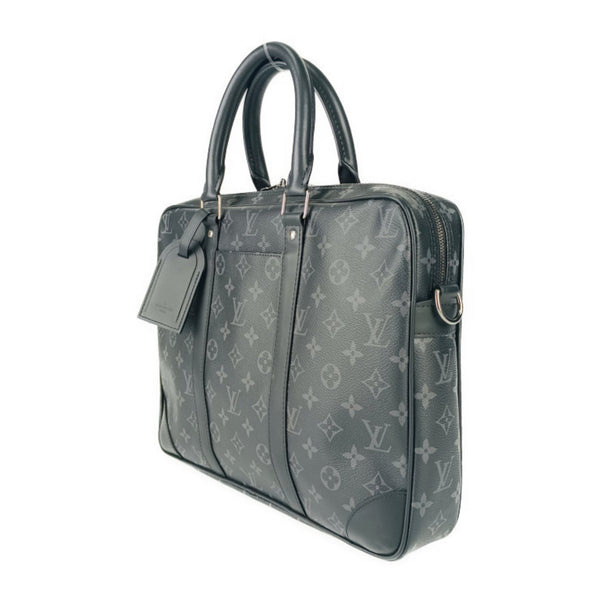 LOUIS VUITTON Louis Vuitton Bag Porto Document Voyage M46457 Black Grey Monogram Eclipse Canvas Leather Men\'s