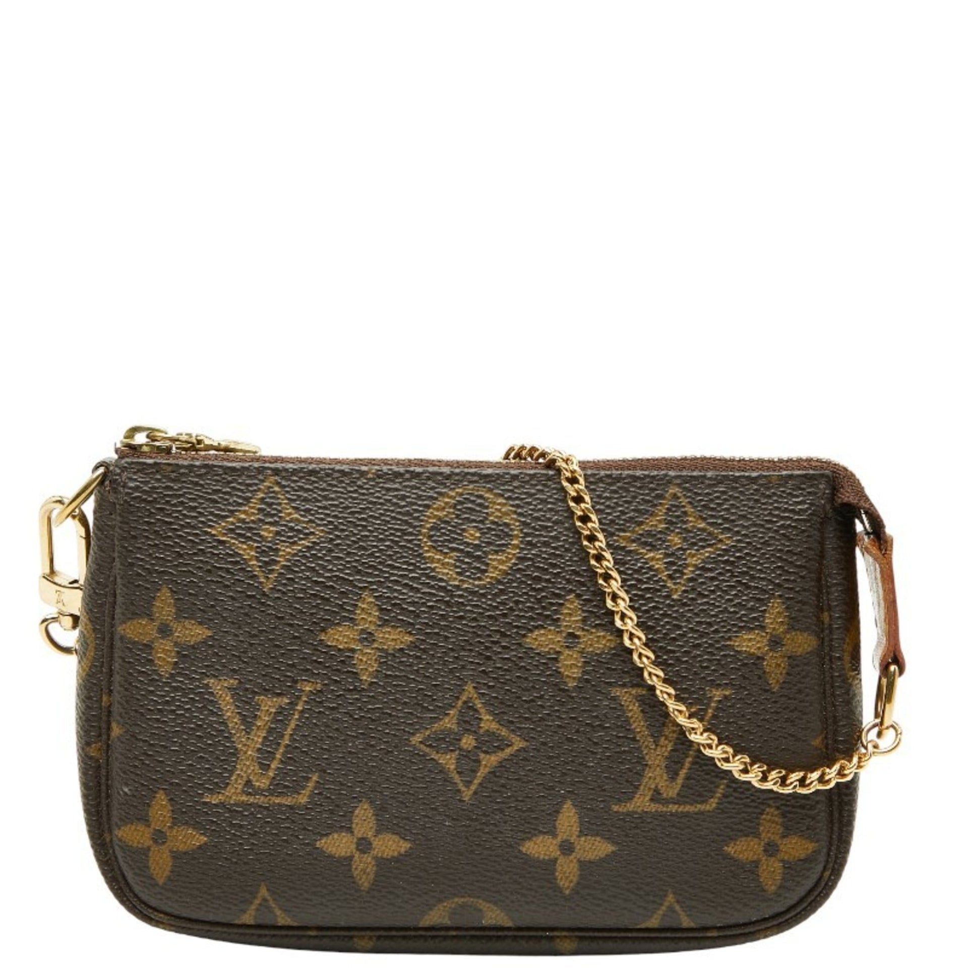 Louis Vuitton Monogram Mini Pochette Accessory Pouch Handbag M58009 Brown Leather Women\'s LOUIS VUITTON