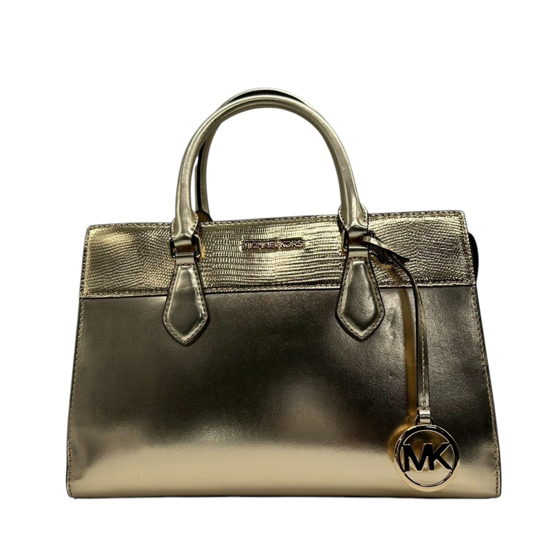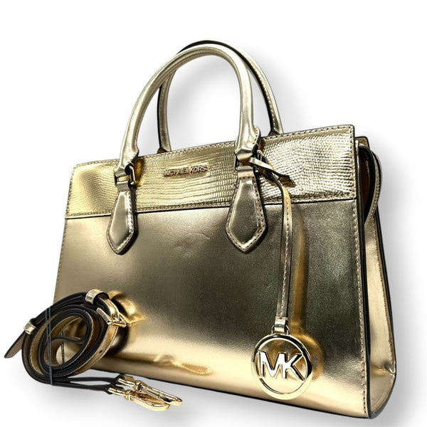Michael Kors 2-way handbag/shoulder bag in gold embossed leather with MK logo charm. Women\'s.
