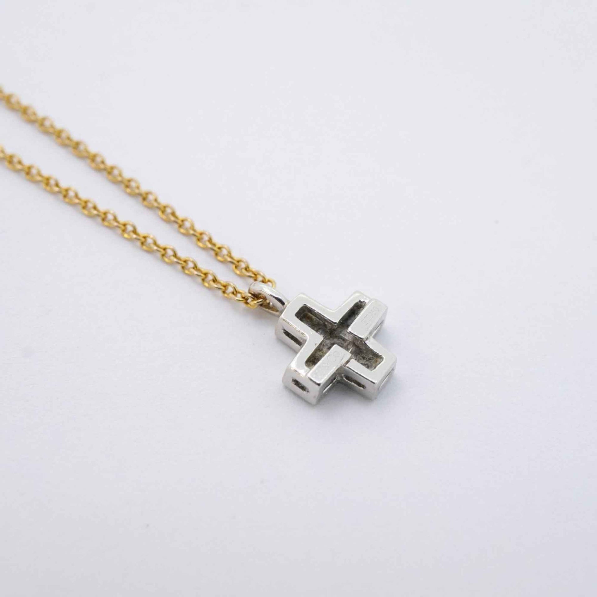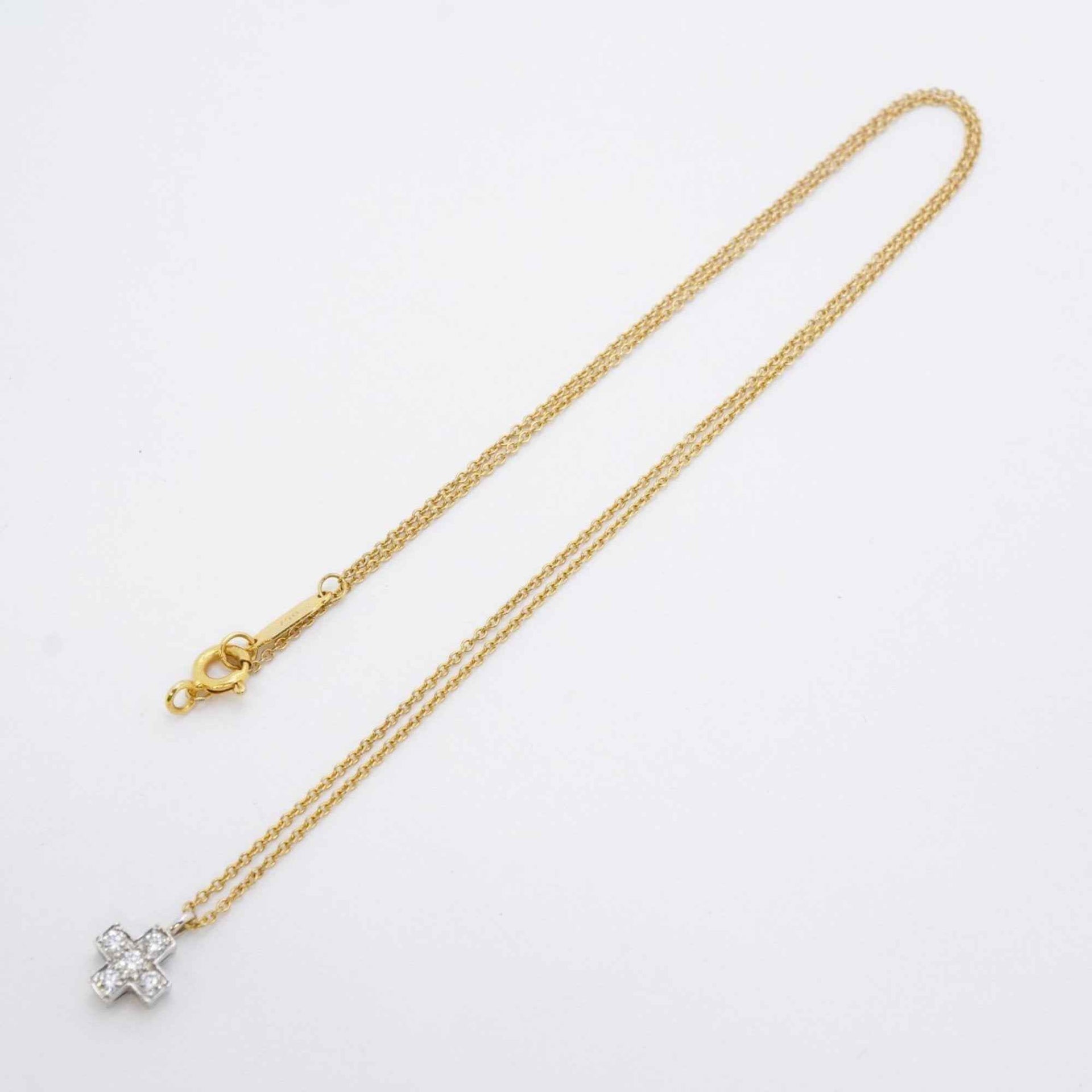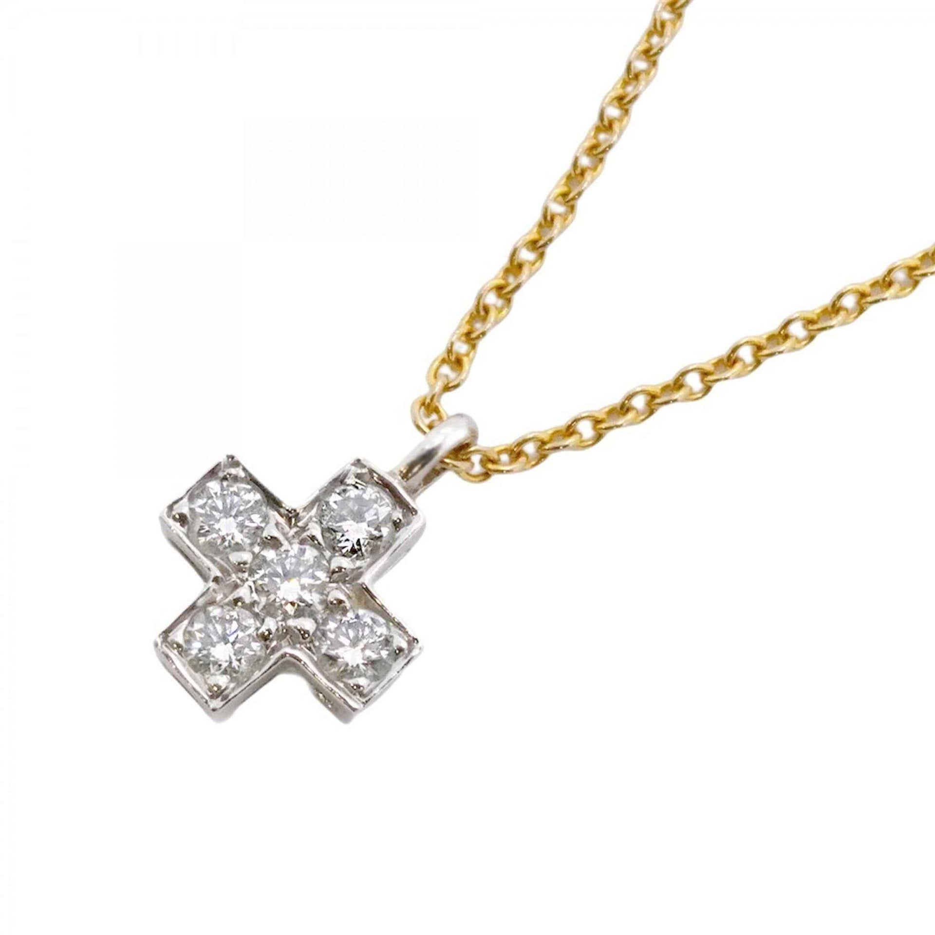 Tiffany Necklace Crucy Form 5PD 18KYG Yellow Gold Pt950 Platinum Diamond Women\'s