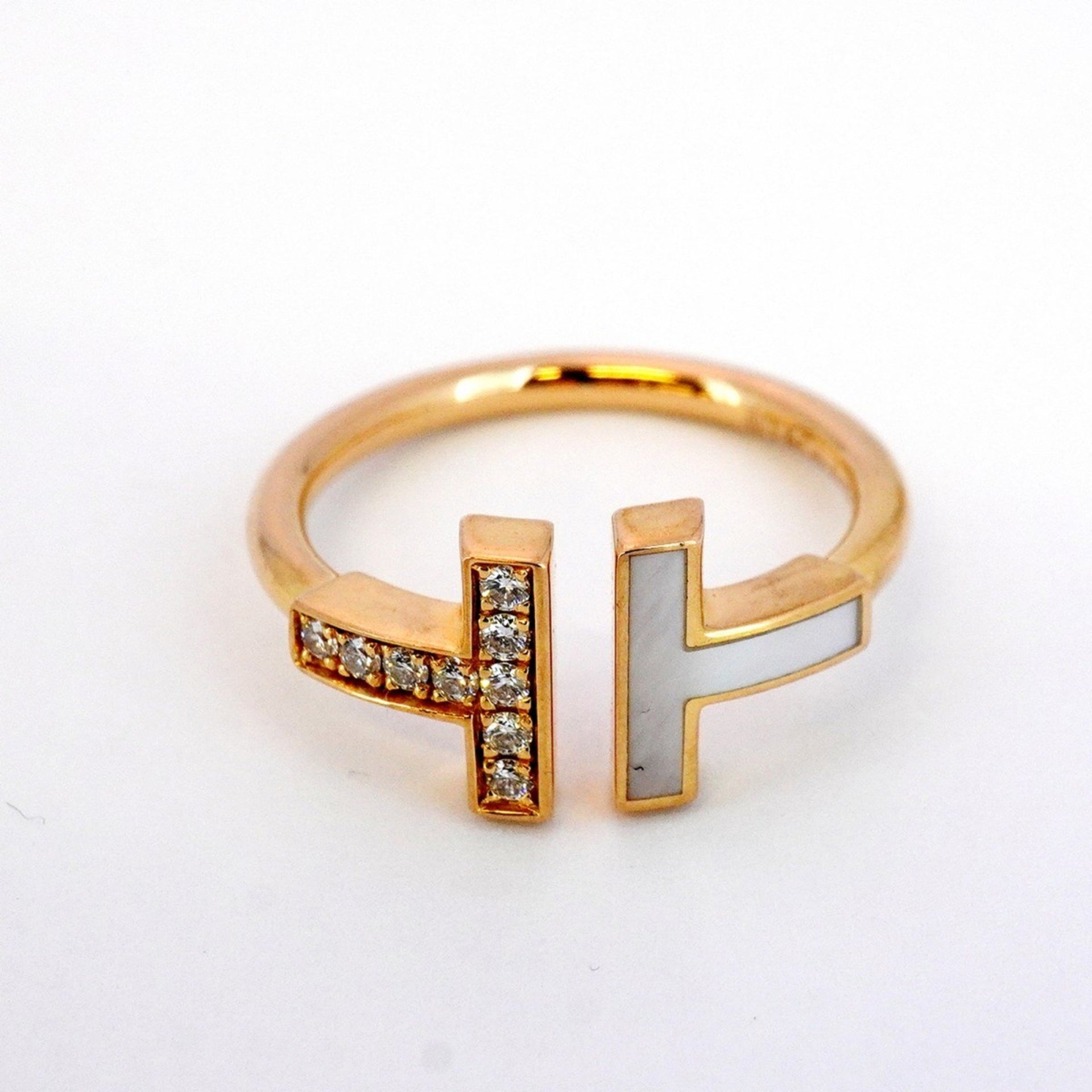 Tiffany T-wire ring in 18K pink gold with diamonds and mother-of-pearl, size 10, for women