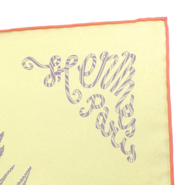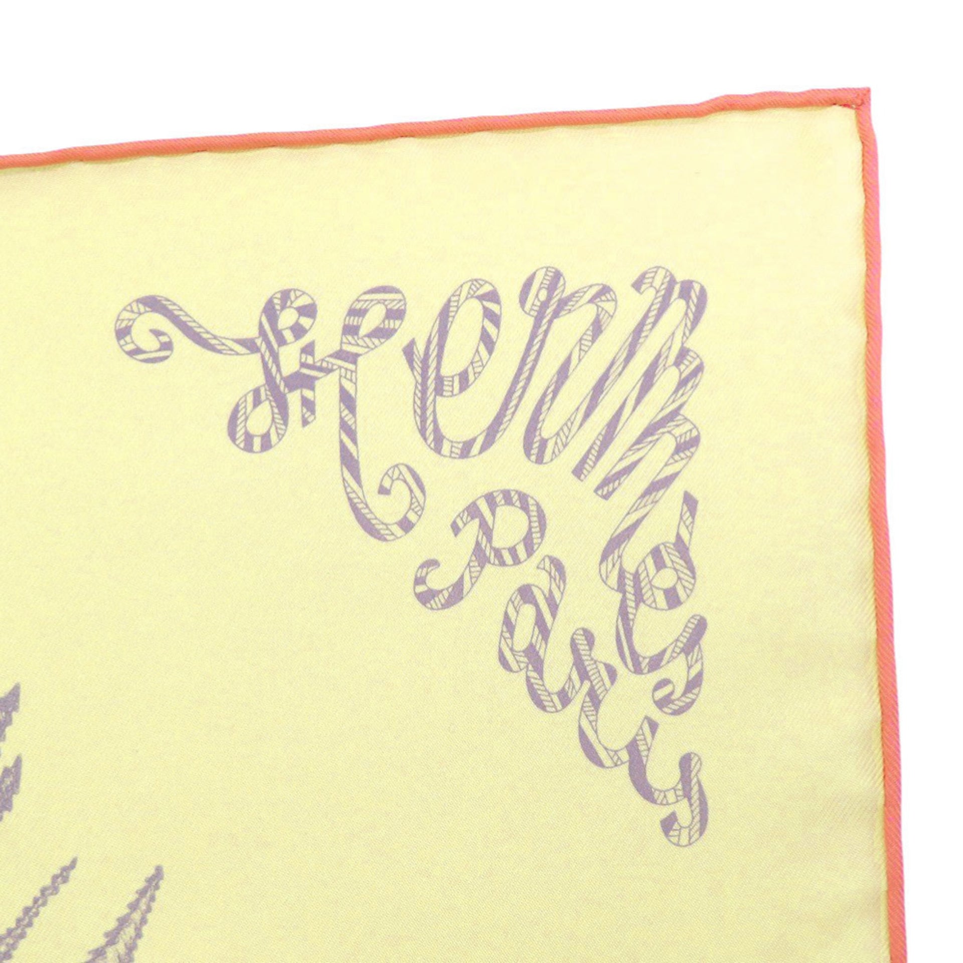 Unused Hermès Carré 90 \"Plumets et Panache\" feather and plume ornament silk light yellow scarf muffler 1544 HERMES