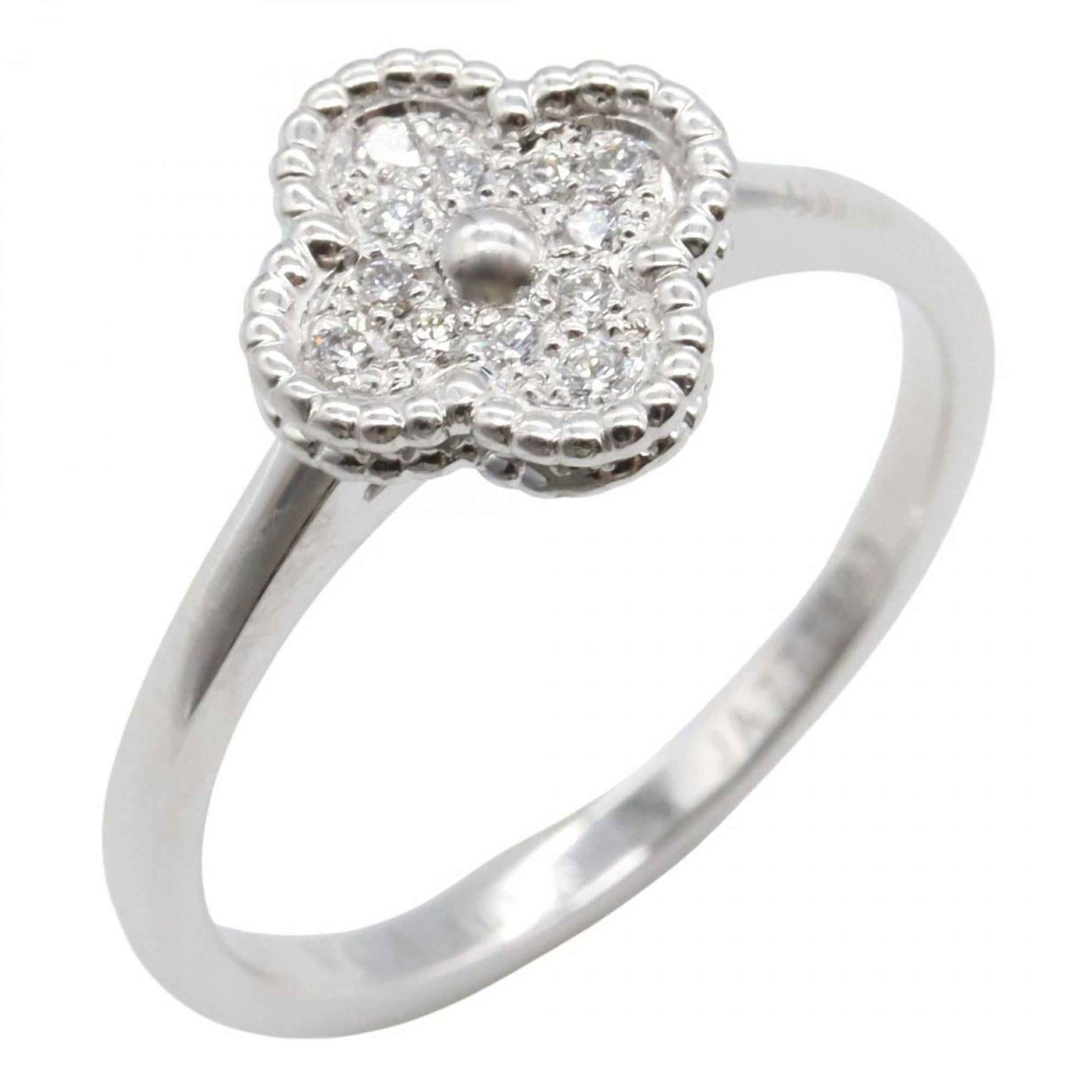 Van Cleef & Arpels Sweet Alhambra Diamond Ring in 18K White Gold (VCARO85800) - Women\'s, Silver or Clear.