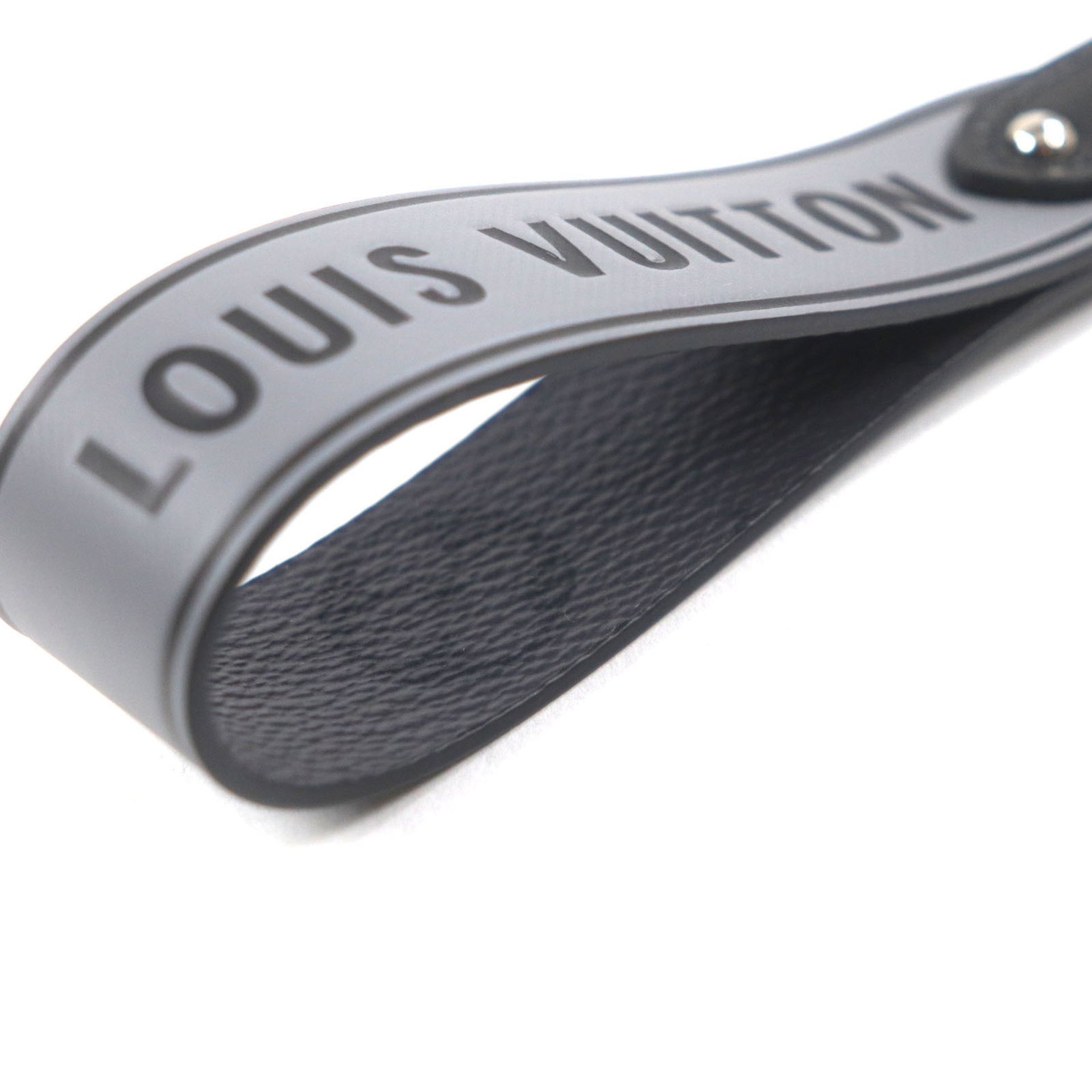 LOUIS VUITTON 2022 Louis Vuitton M00337 Capital LV Monogram Eclipse Calfskin Key Ring Strap, Gray, Silver Hardware, Box and Dust Bag Included, Made in France, Men\'s