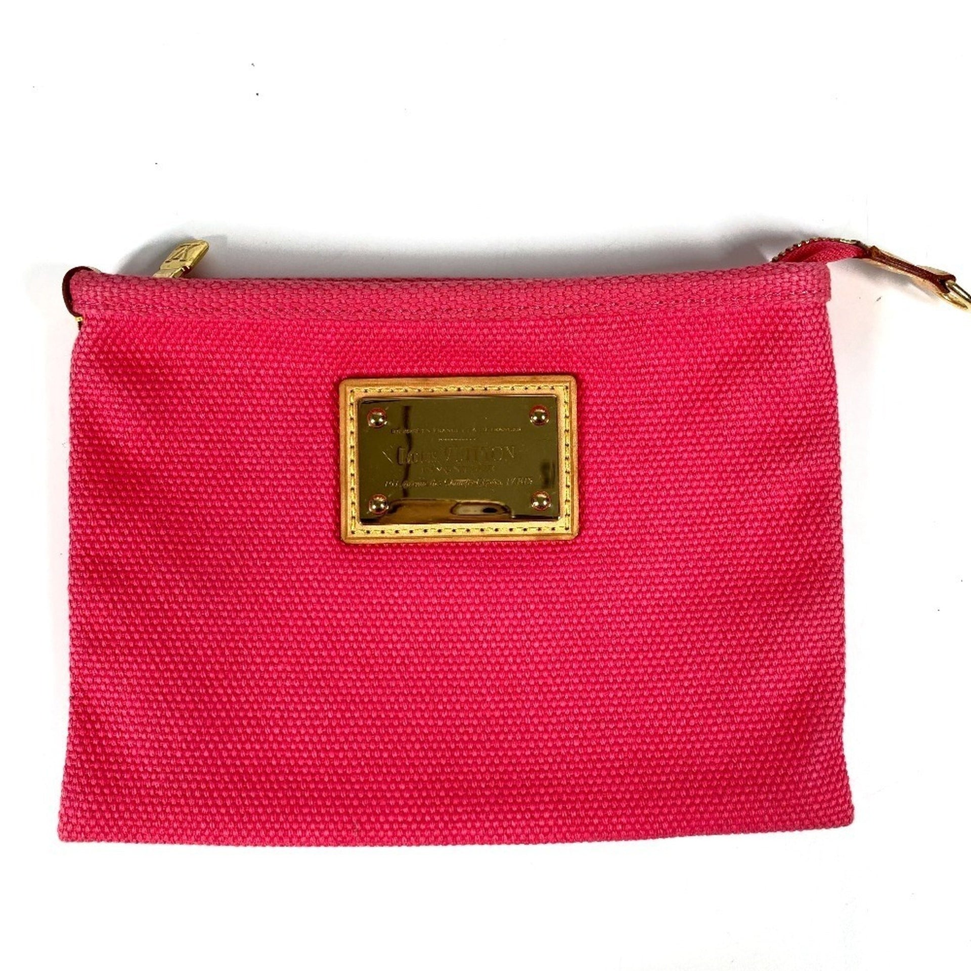 LOUIS VUITTON Antigua Pochette Flat PM M40068, Multi-Pouch, Makeup Pouch, Canvas, Women\'s, Pink
