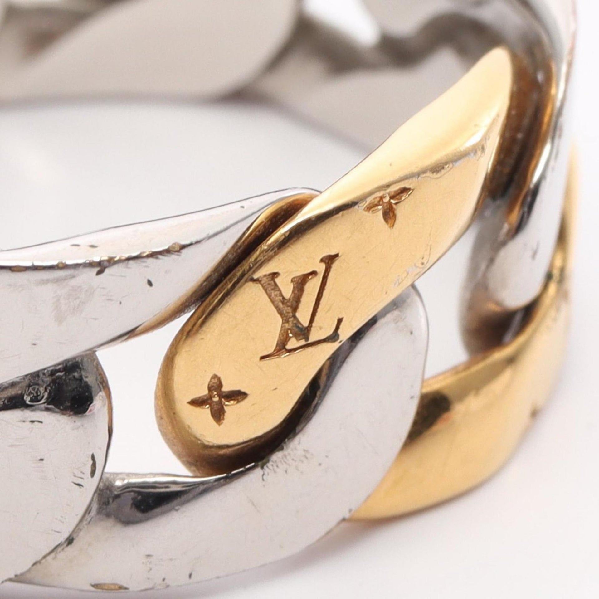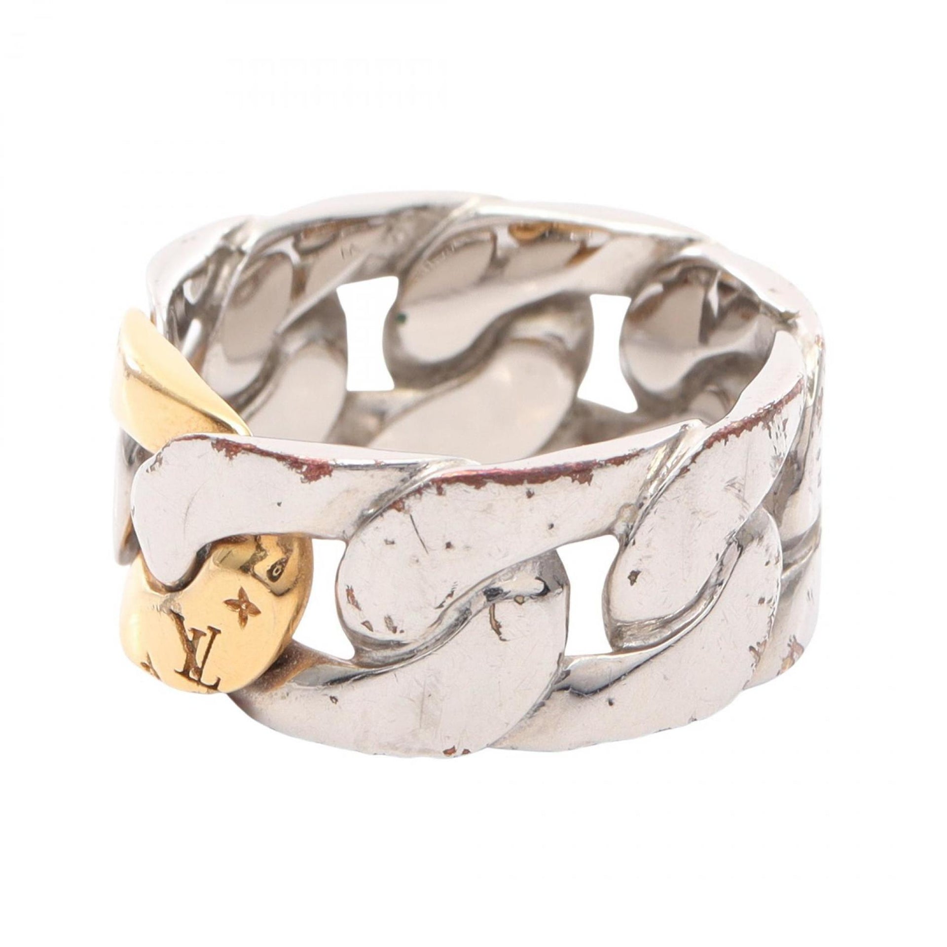 Louis Vuitton Berg Chain Links Patches Ring, Stainless Steel, Gold Plated, Men\'s, Silver or Gold, M69465