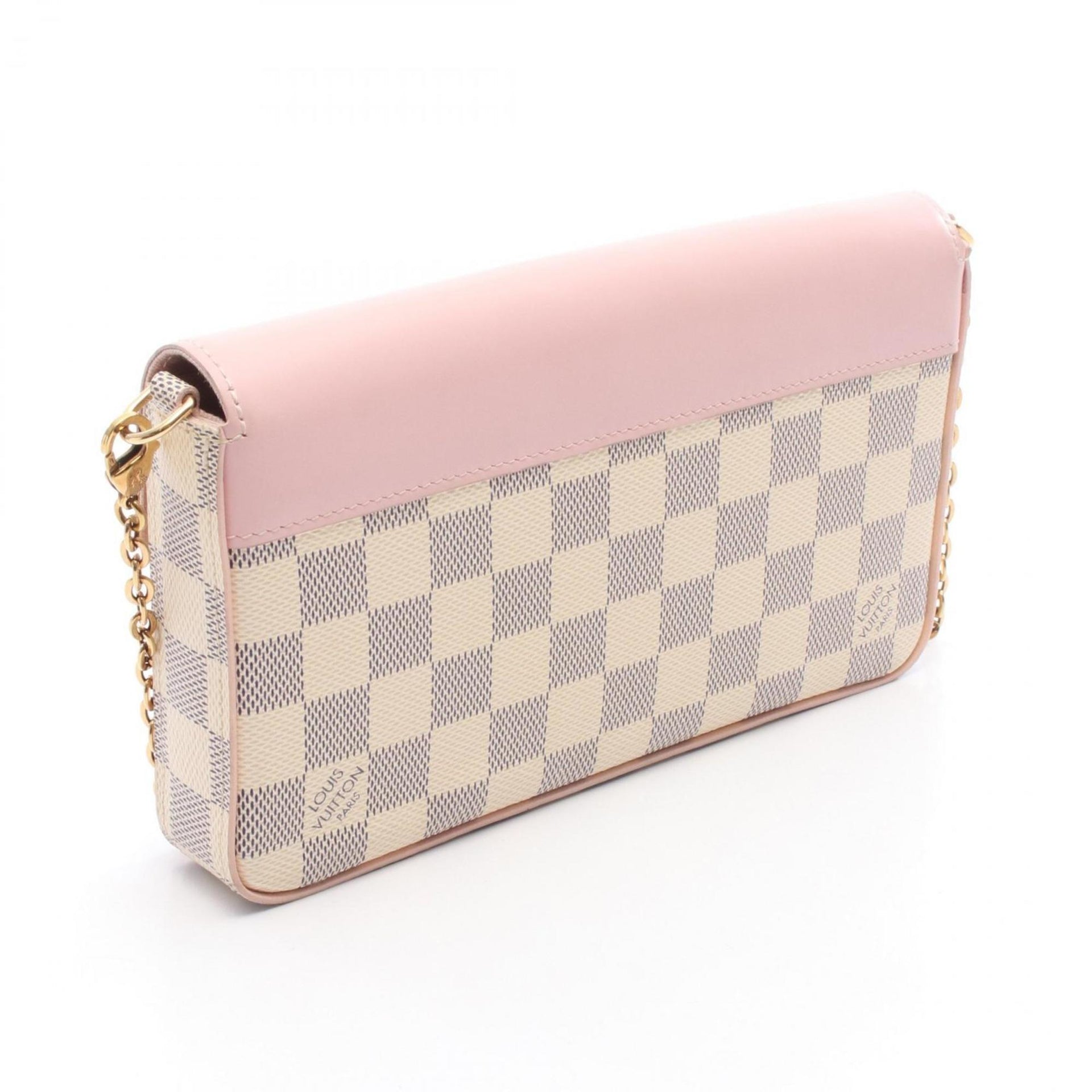 Louis Vuitton Felicie Damier Azur and Oud Rose Pochette Shoulder Bag in Coated Canvas Leather, Women\'s, White Pink, N60235