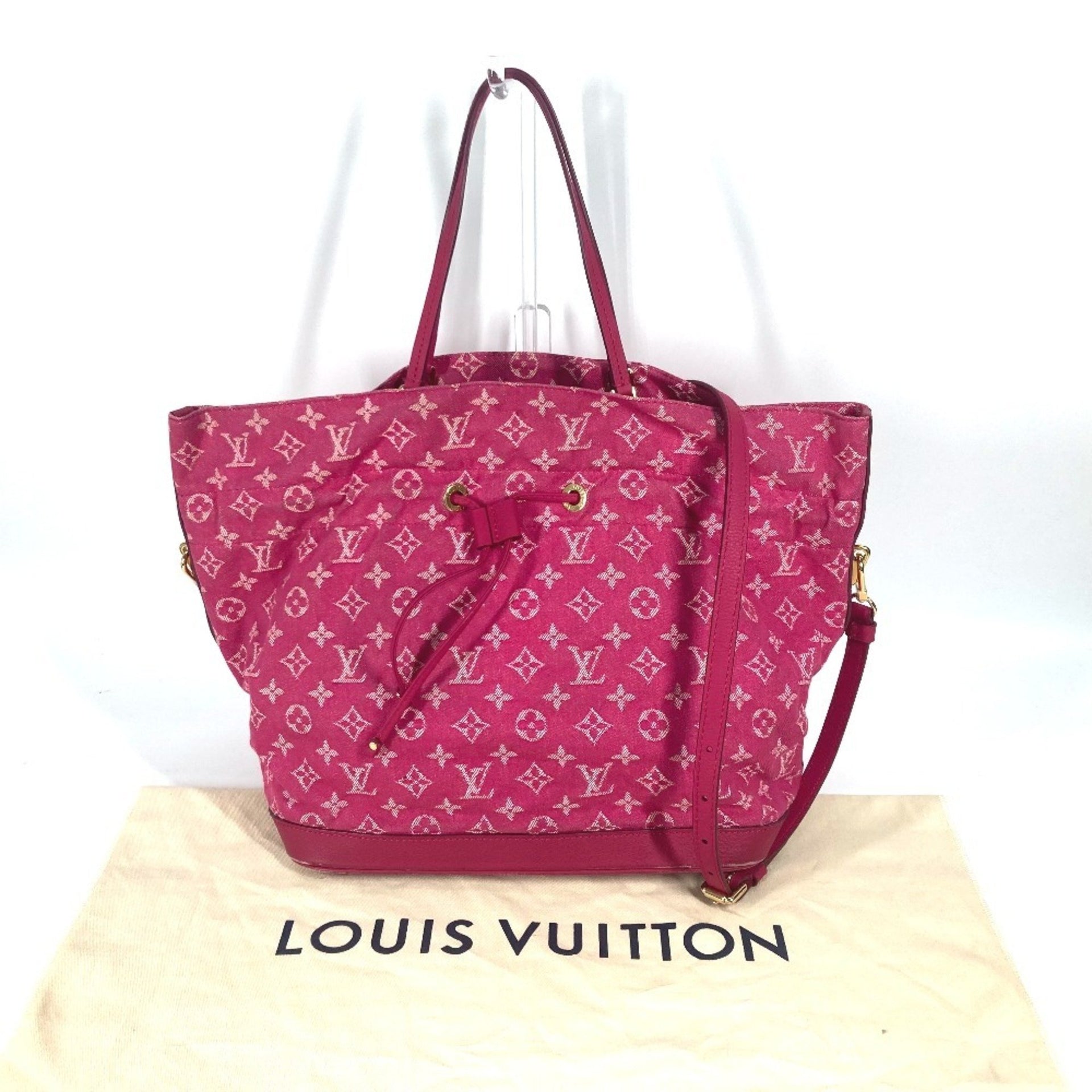 LOUIS VUITTON M40870 Monogram Denim Noefull MM Bucket Tote Bag/Drawstring Shoulder Bag in Denim, Women\'s, Rose Indigo Pink