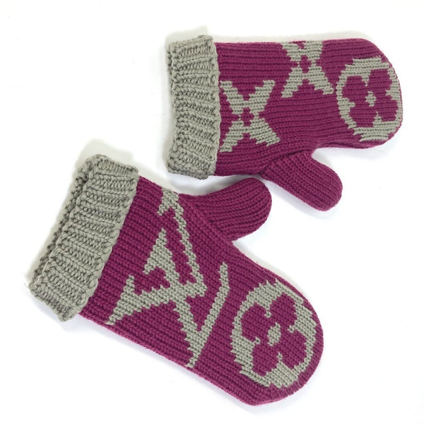 LOUIS VUITTON M72766 Monogram Knit Mittens, Maufort Grand Floor, Women\'s Wool Gloves, Cassis