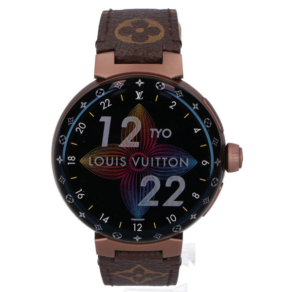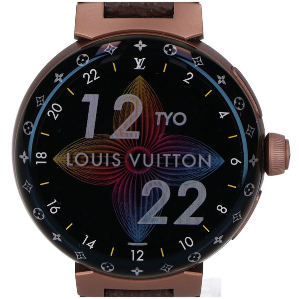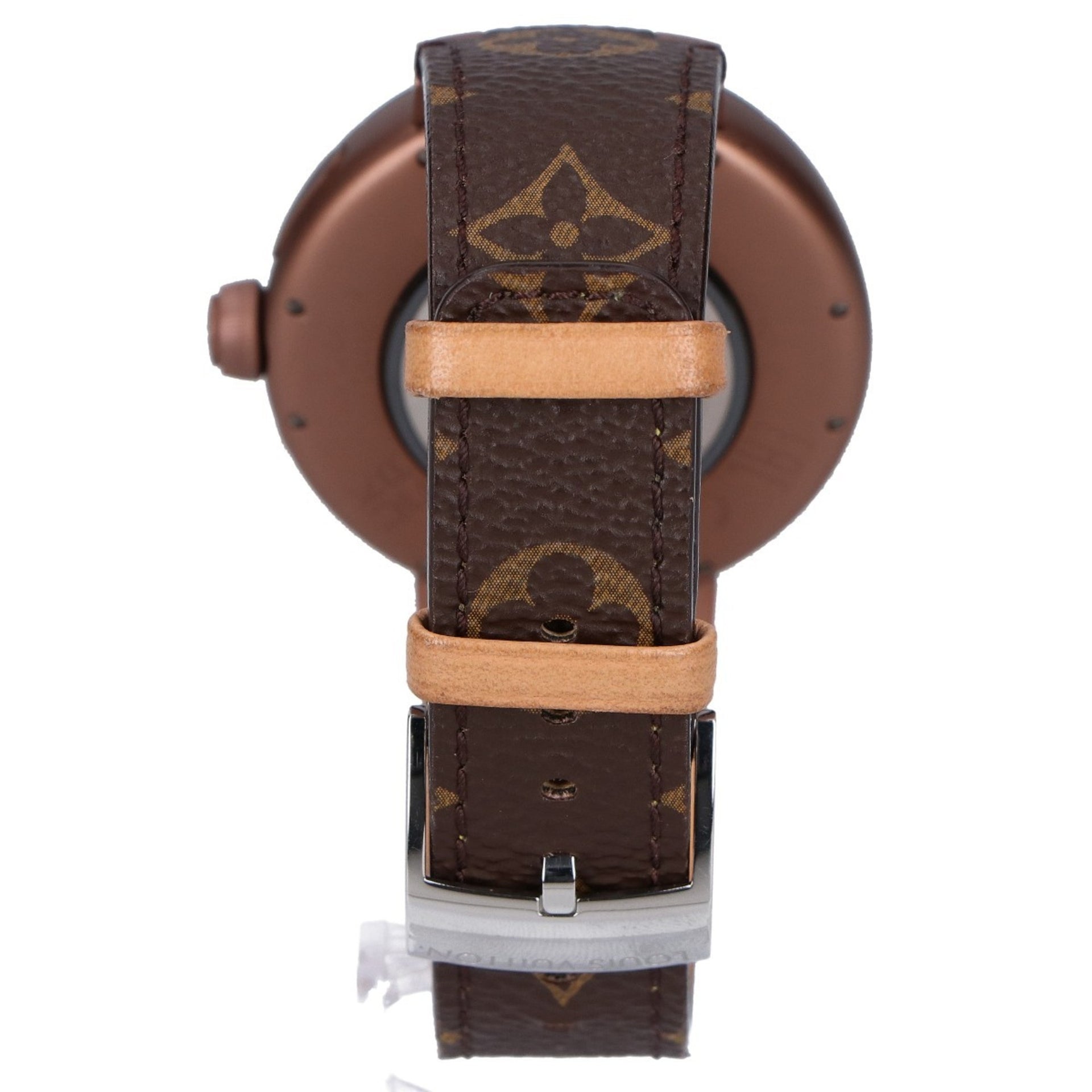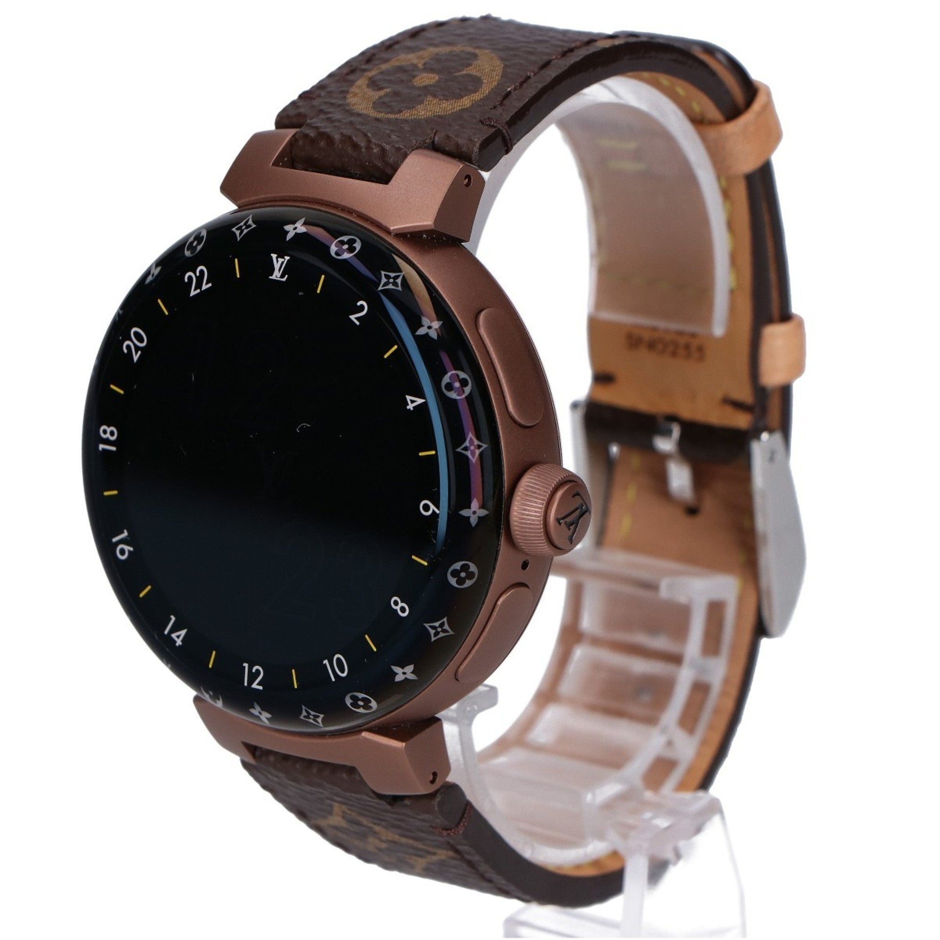 LOUIS VUITTON Men\'s Tambour Horizon Light-Up Smartwatch (QAD02A) in Excellent Condition, Matte Brown with Monogram Design