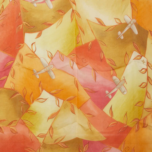 Louis Vuitton Monogram Airplane Scarf, Beige Multicolor Silk, Women\'s, LOUIS VUITTON
