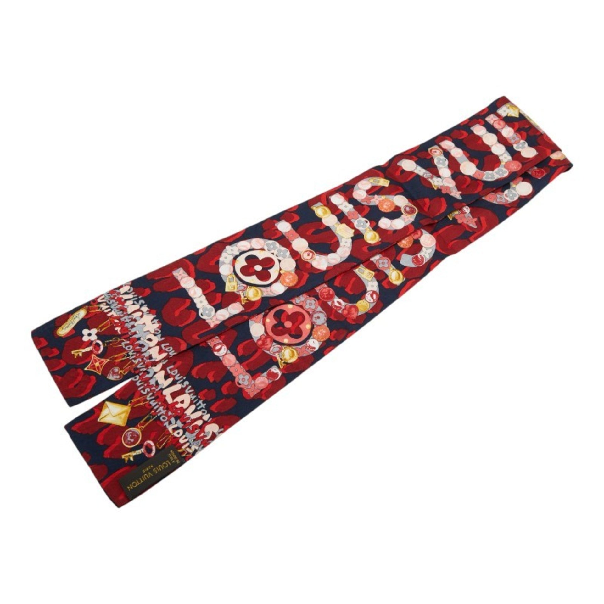 Louis Vuitton Monogram Bandeau Leopard Print Scarf, Red and Navy Silk, Women\'s, LOUIS VUITTON