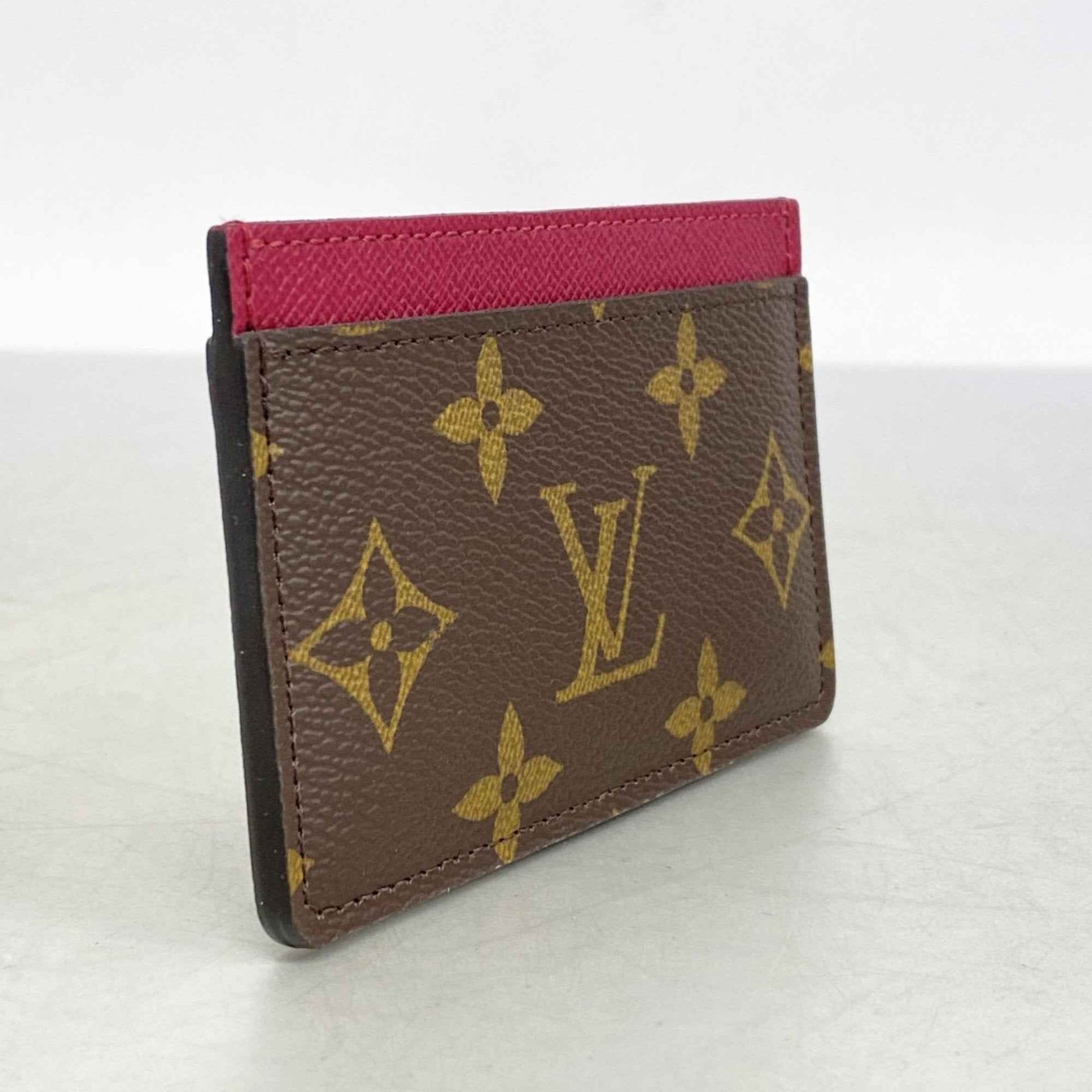Louis Vuitton Monogram Porte Carte Sample Card Case M60703 Brown/Fuchsia for Women