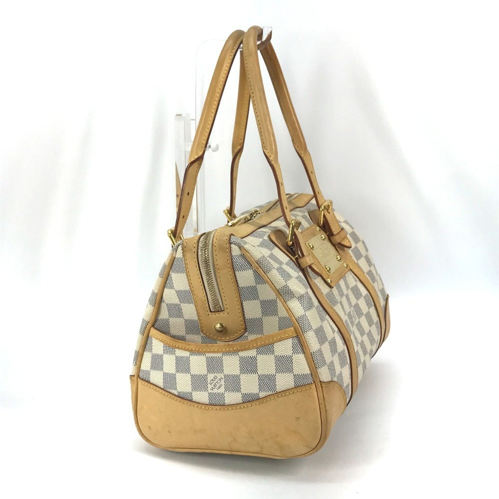 LOUIS VUITTON N52001 Damier Azur Berkeley PM Mini Boston Bag, Canvas, Women\'s, White