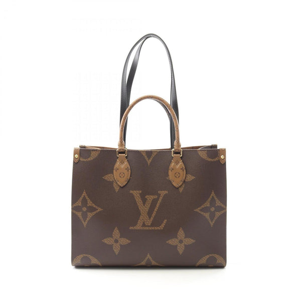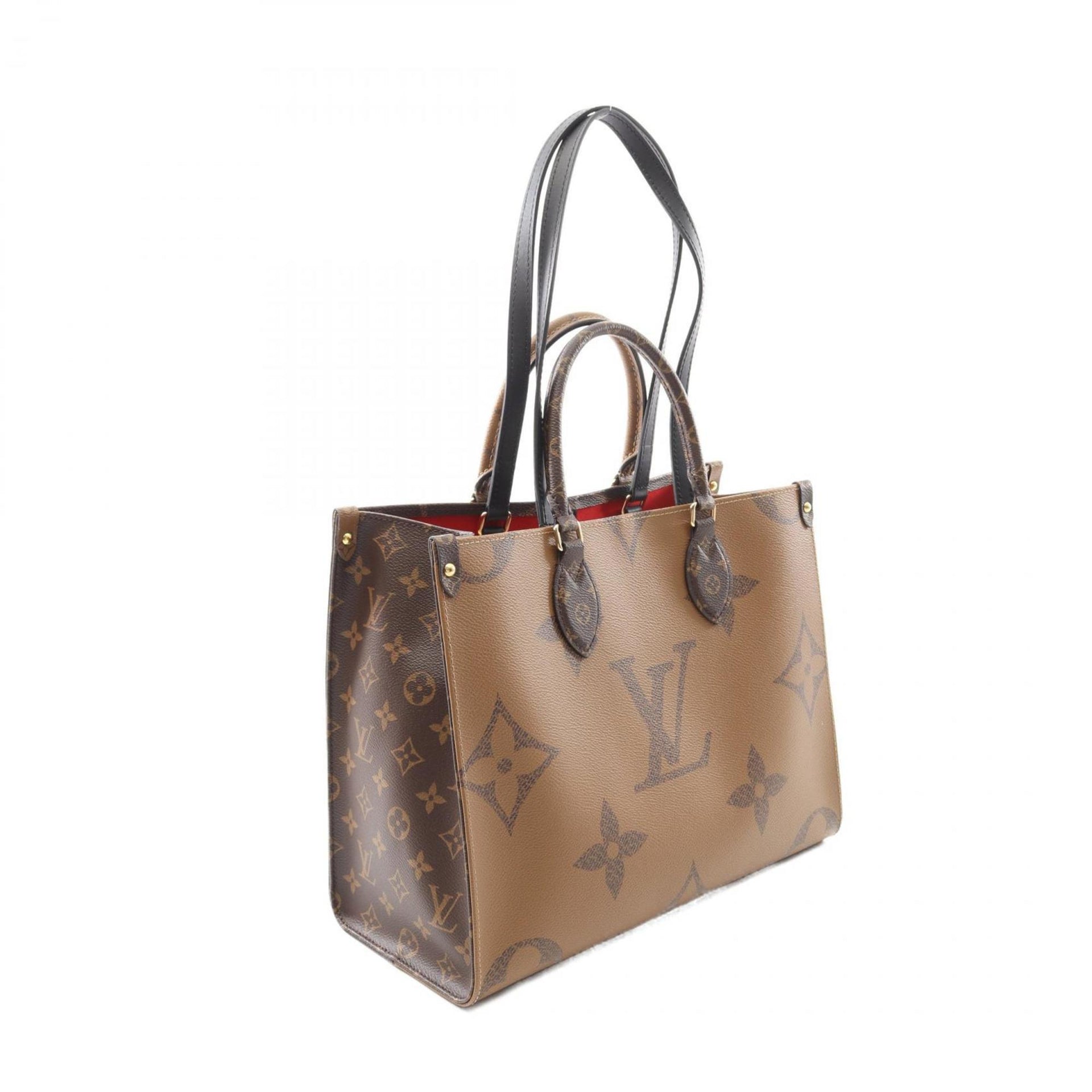 Louis Vuitton On the Go MM Tote Bag in Coated Canvas and Leather with Monogram Giant Reverse Pattern, Women\'s, Brown Beige, M45321