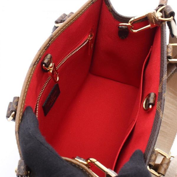 Louis Vuitton On the Go PM Handbag in Coated Canvas with Monogram Giant Reverse, Women\'s, Brown and Beige, M46373
