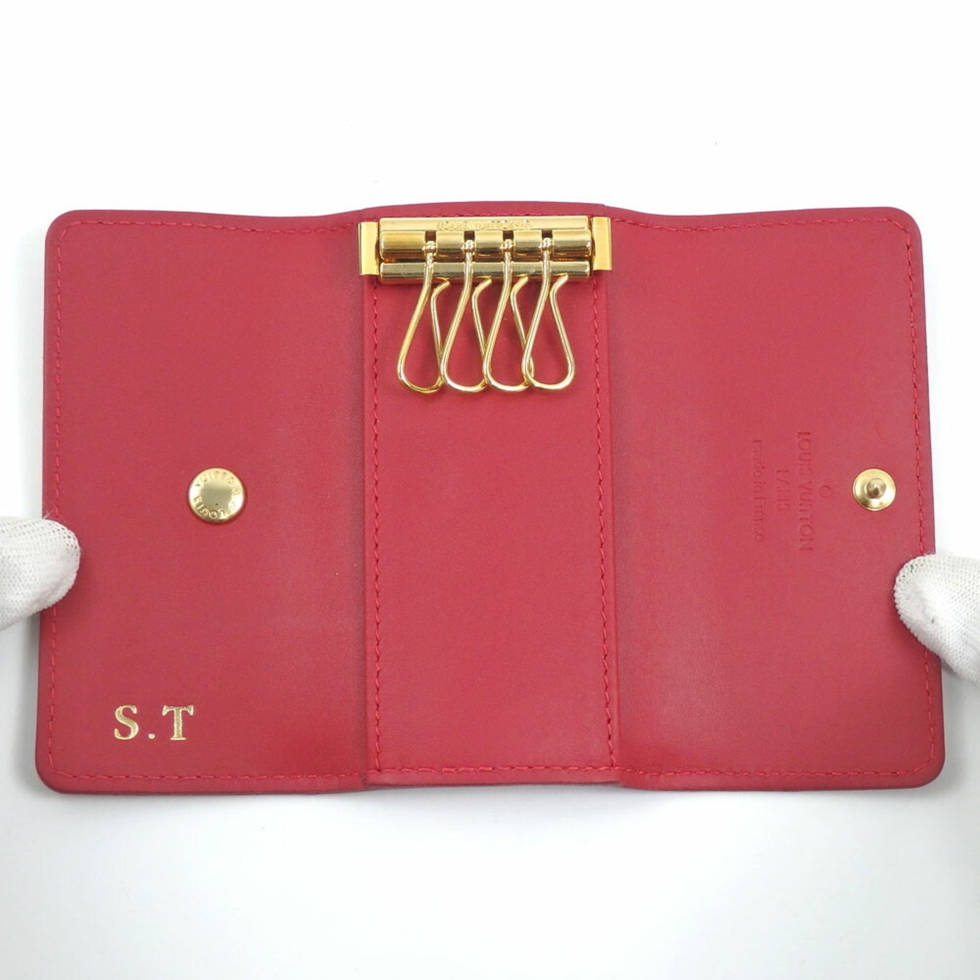 Louis Vuitton Vernis Multicle 4 Key Case, Women\'s, M91976, Pomme d\'Amour with Initials