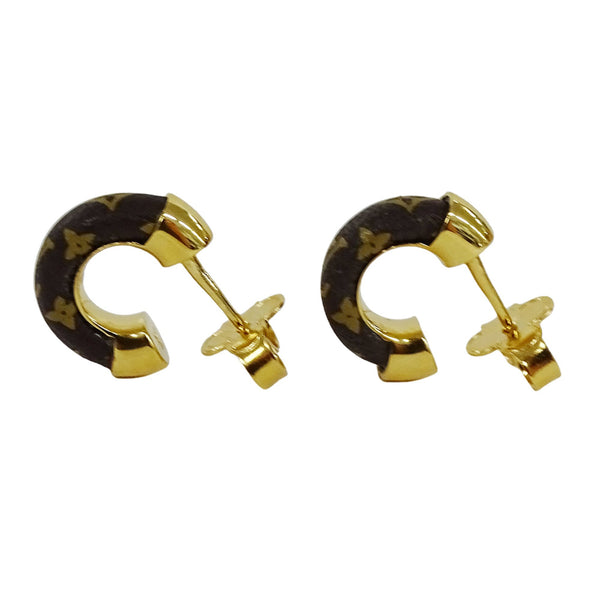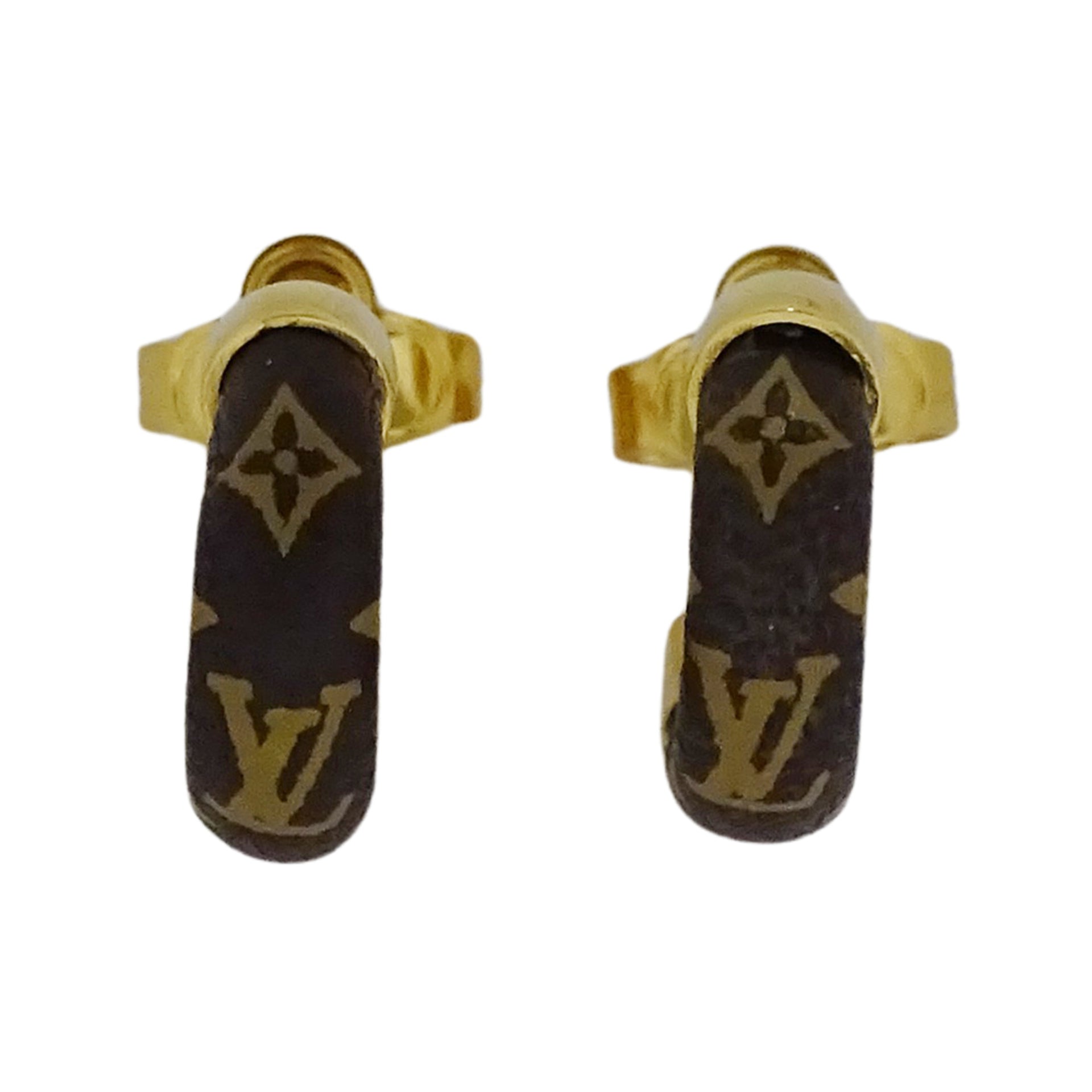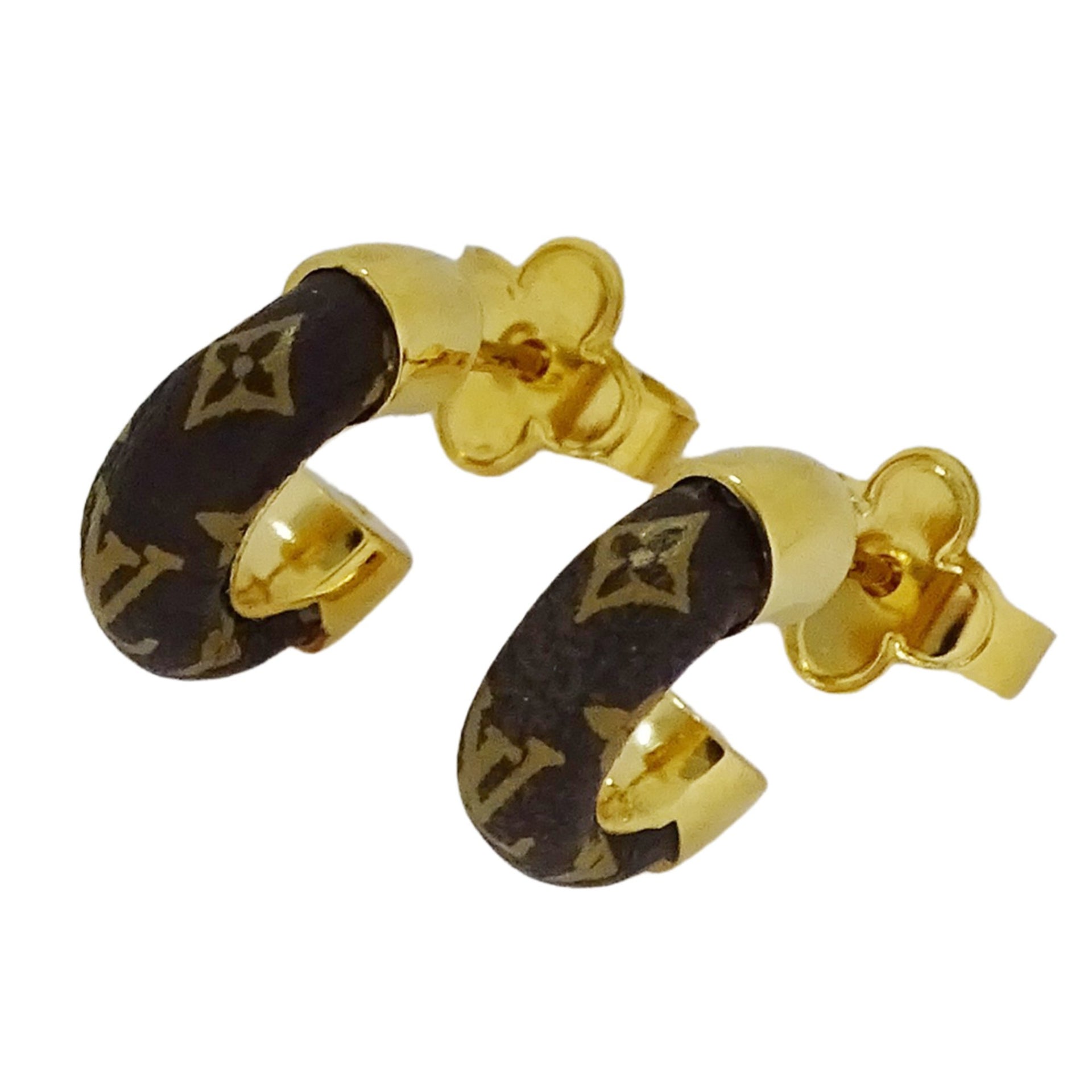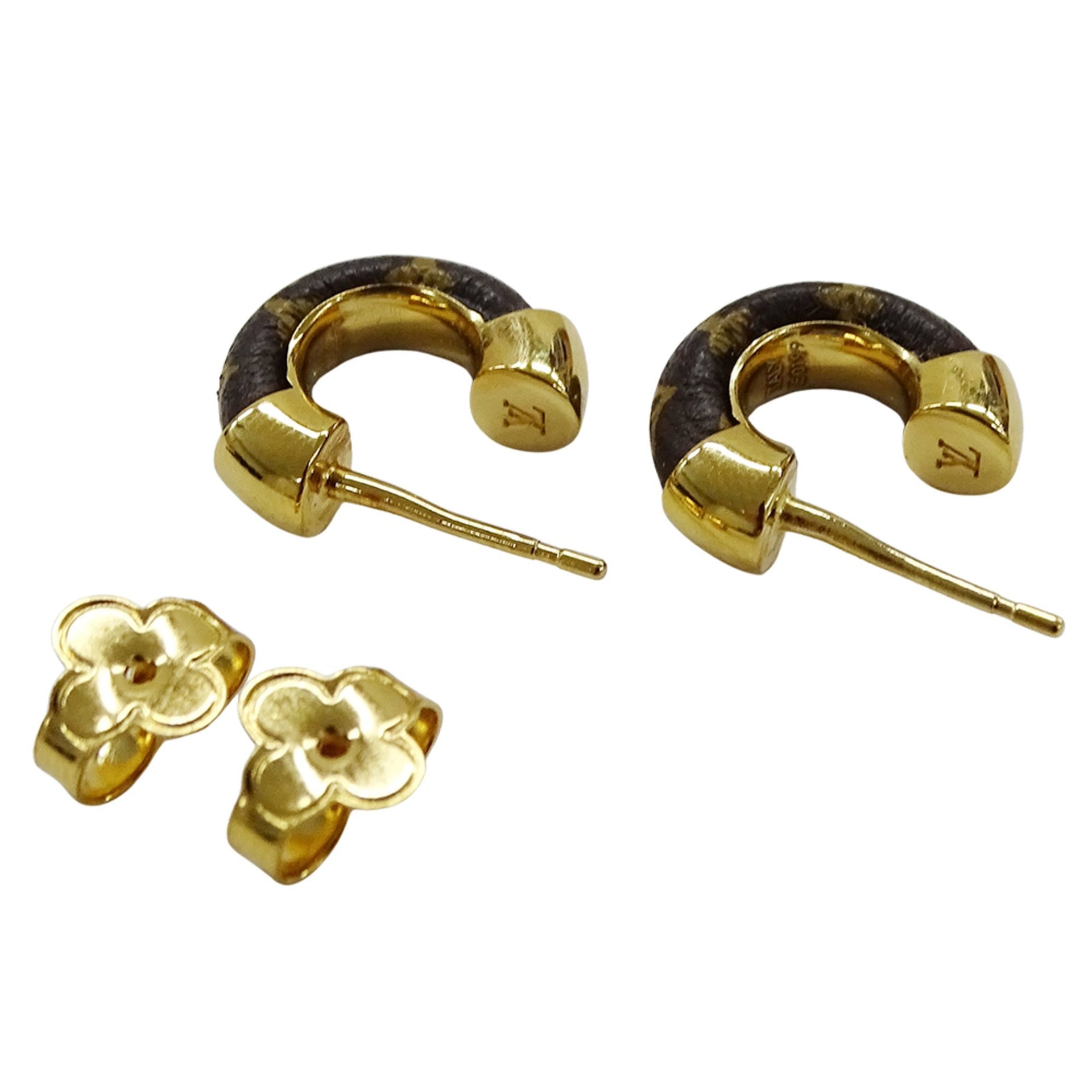 Louis Vuitton Women\'s GP Boucle d\'Oreille Mini Hoop Earrings in Wild LV Monogram Gold (M68370 LE0199) for Both Ears