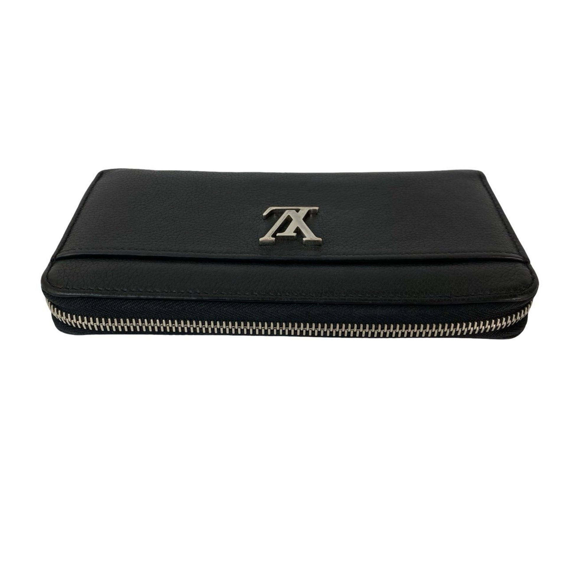 LOUIS VUITTON Zippy Lockme Leather Round Zip Bifold Long Wallet Black 29930