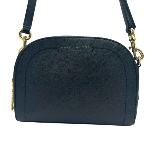MARC JACOBS Shoulder Bag, Black Saffiano Leather, Crossbody, Gold Hardware, Logo Plate, Brand Logo, E6