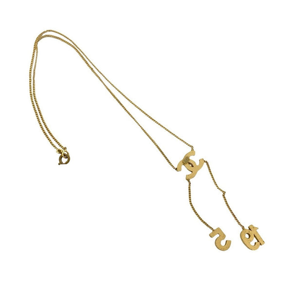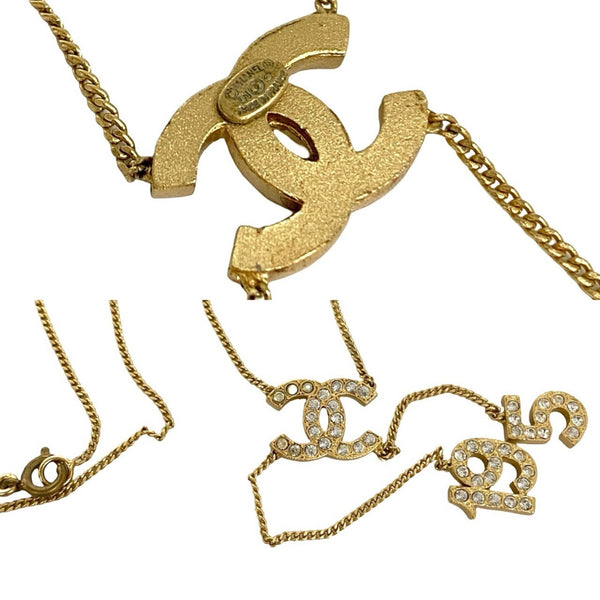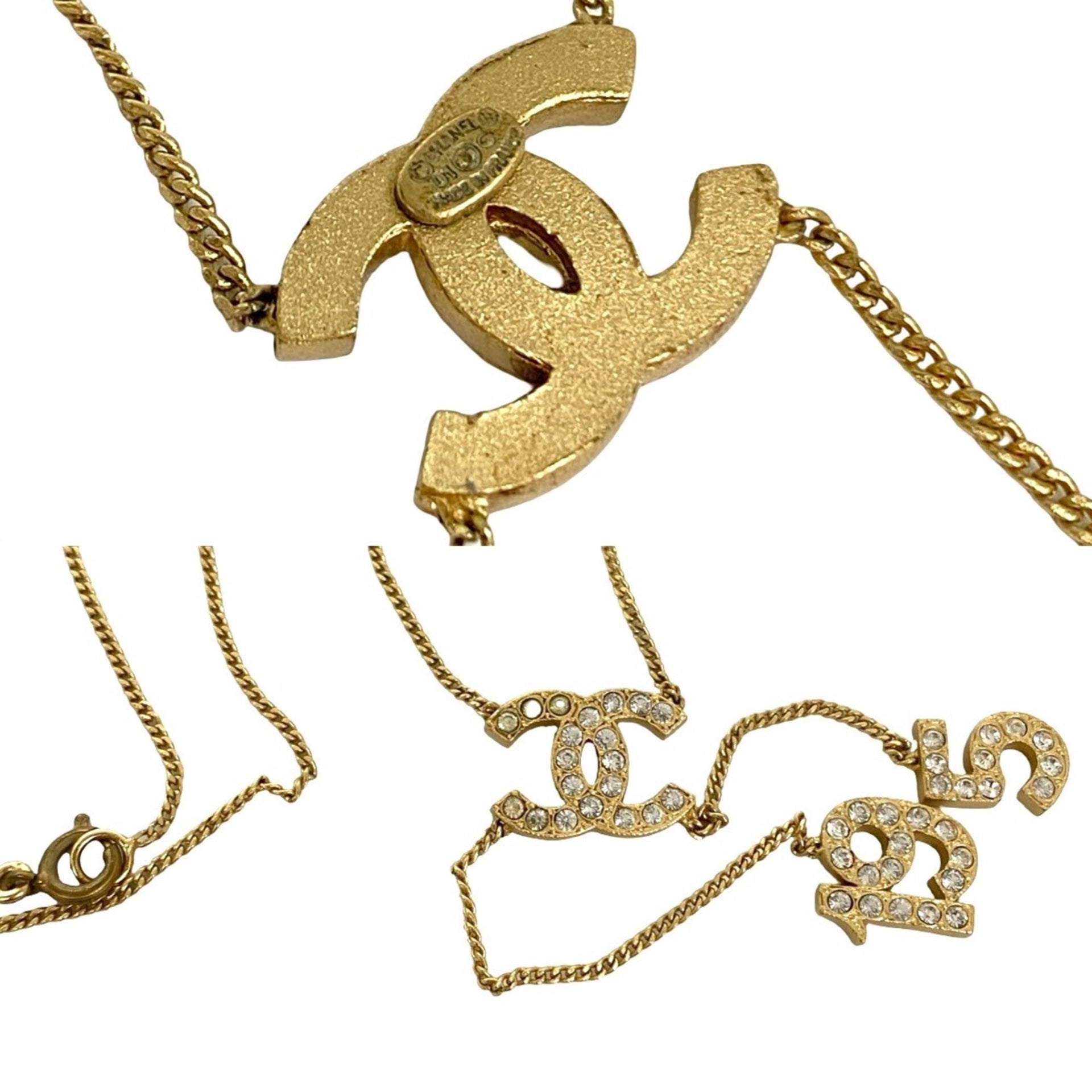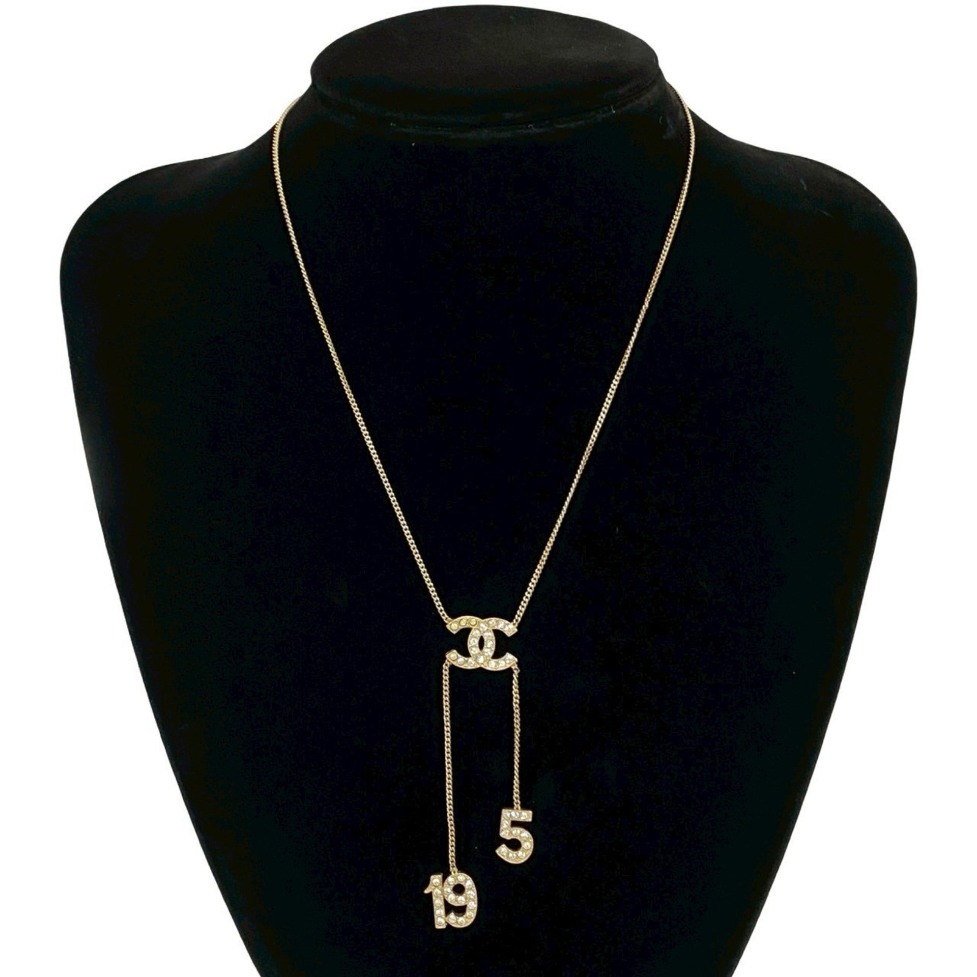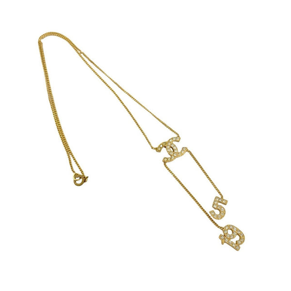 01C CHANEL Coco Mark No.19 No.5 Necklace, Rhinestone and Metal, Gold, 00039