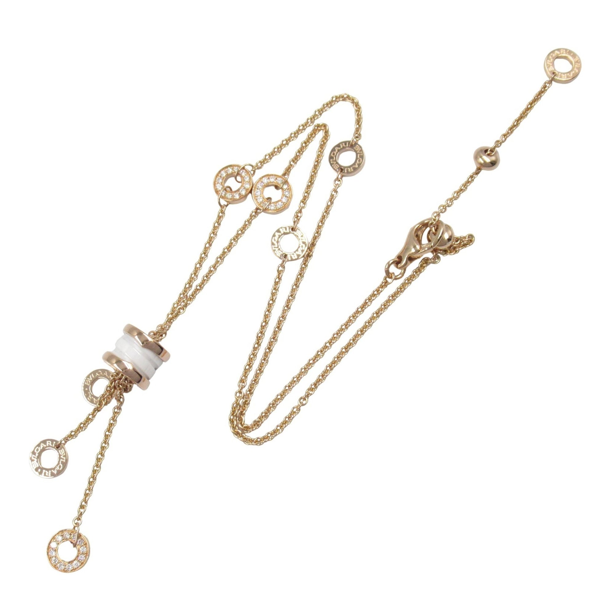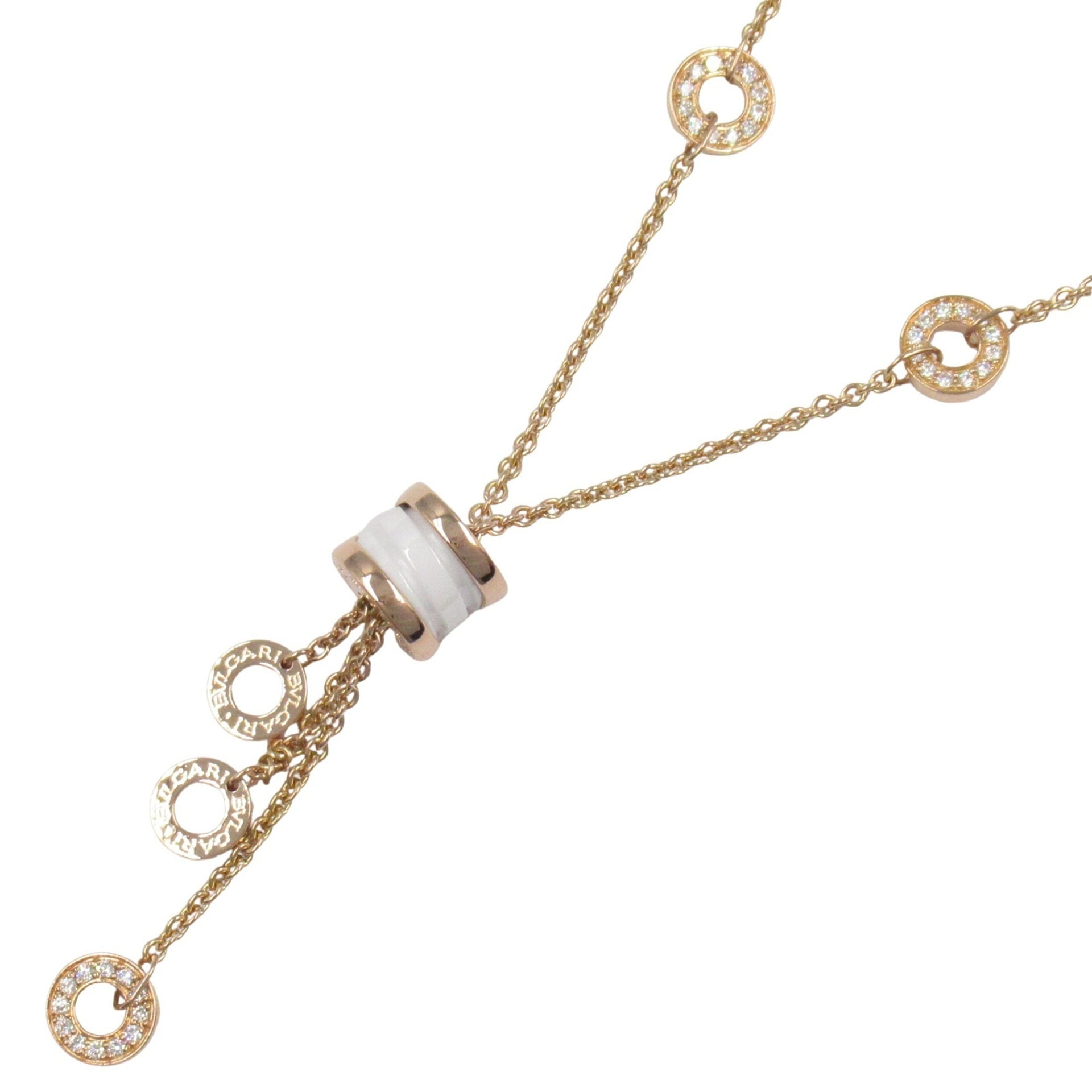 BVLGARI B-zero1 Element Ceramic Necklace, 18K Pink Gold with Diamonds, Women\'s, White and