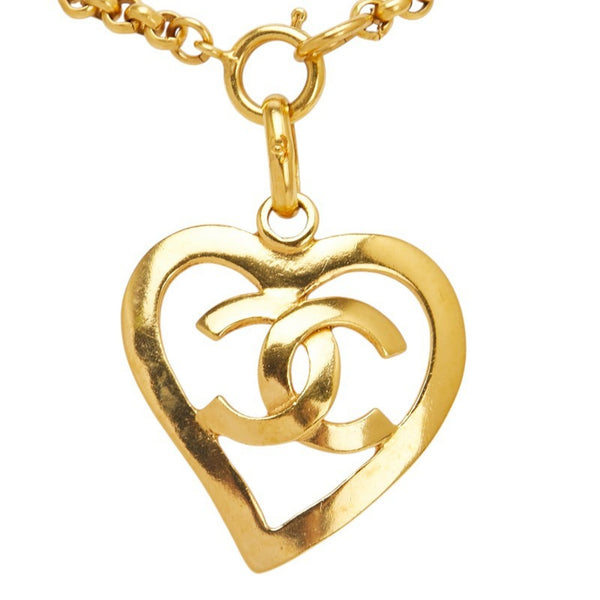 CHANEL Coco Mark Heart Circle Necklace, Gold Plated, Women\'s