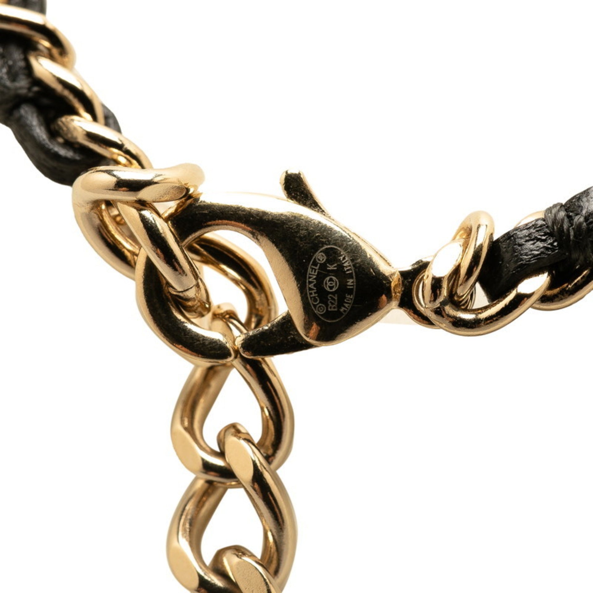 CHANEL Coco Mark Heart Mirror Locket Pendant Necklace in Black and Gold Lambskin for Women