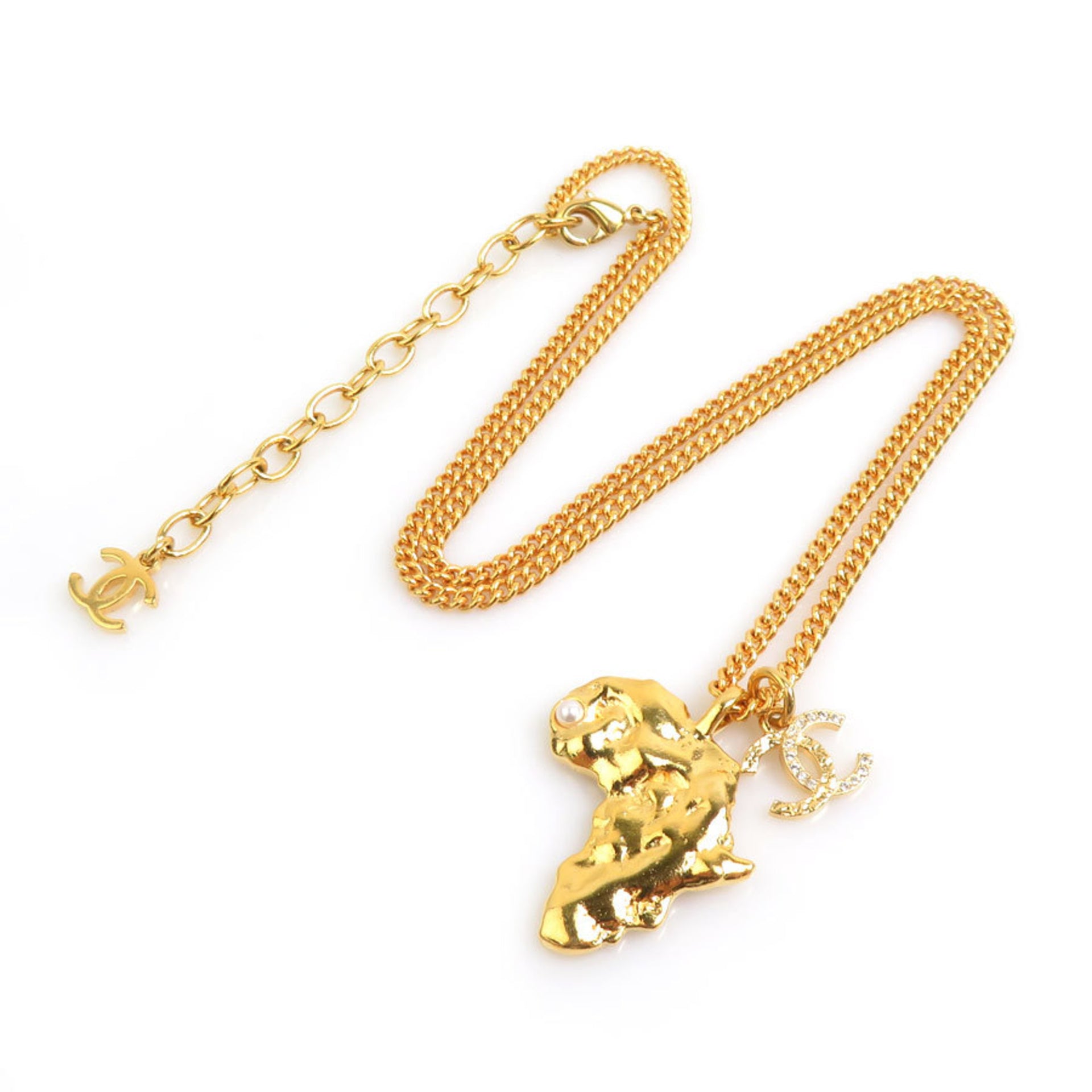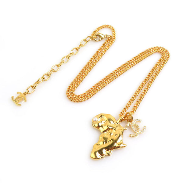 CHANEL Necklace with Coco Mark and African Motif, Metal, Gold, Women\'s, e60903i