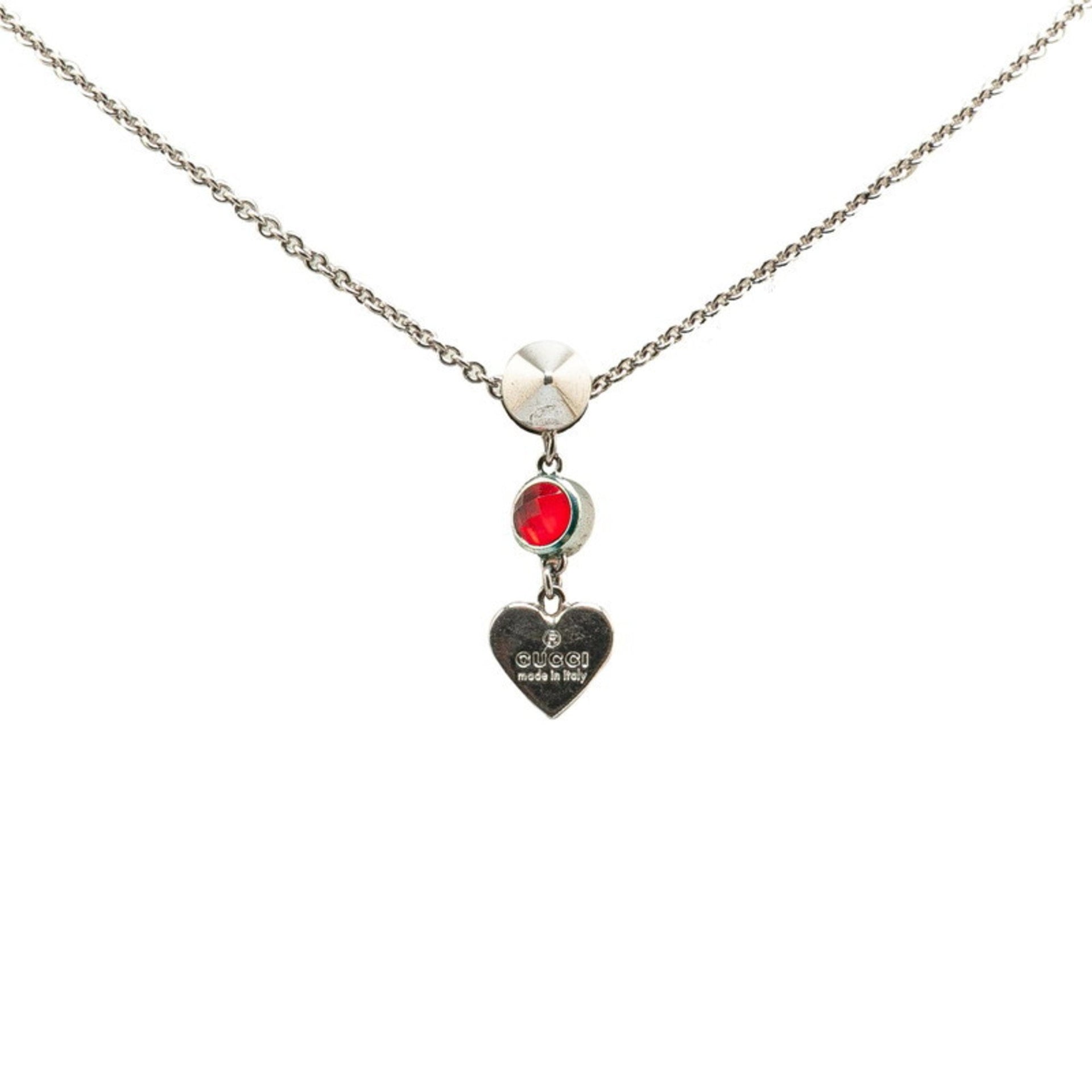 Gucci Heart Motif Pendant Necklace 325871 in Silver and Red SV925 with Colored Stones. Women\'s. GUCCI