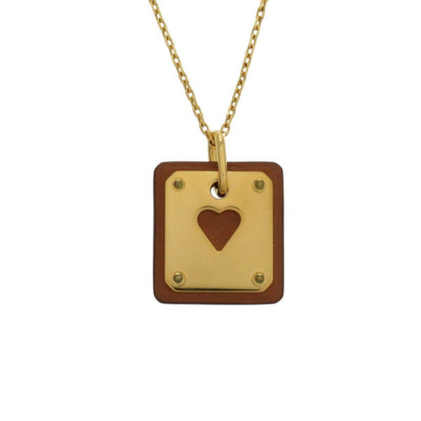 Hermès Asde Coeur Ace of Hearts Leather and Metal Brown Necklace with Z Stamp, 1758HERMES