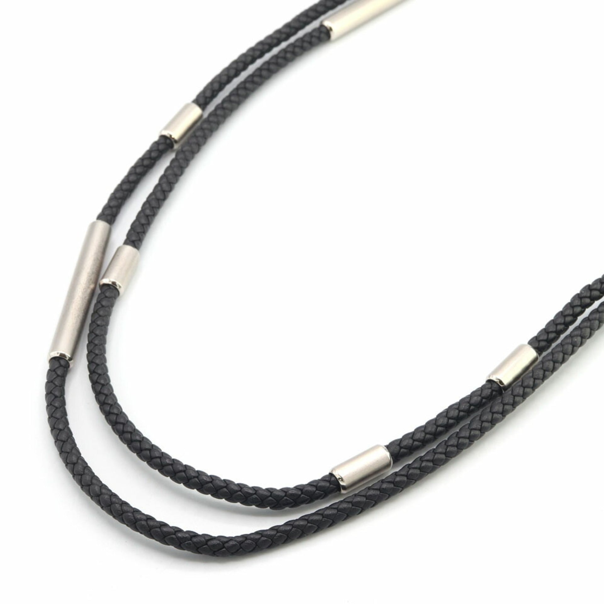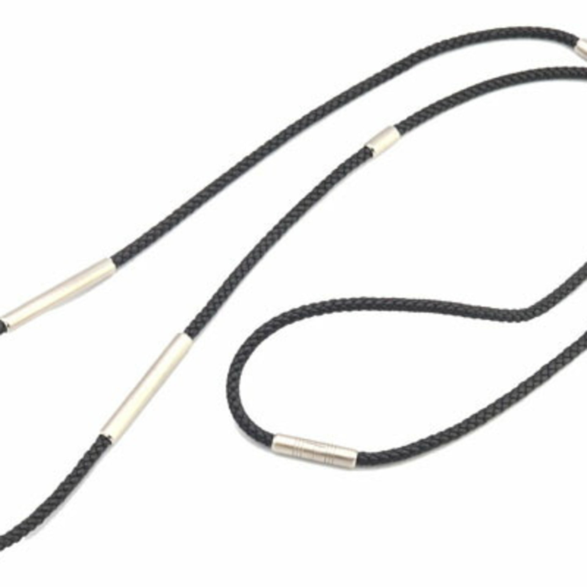 Hermes Hermès Totem Double Tour Necklace, Black and Silver, Leather Metal, Long, Double-Layer, Women\'s