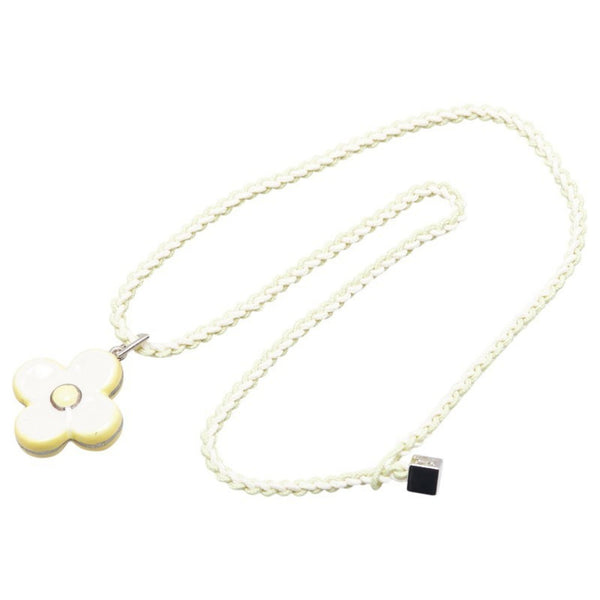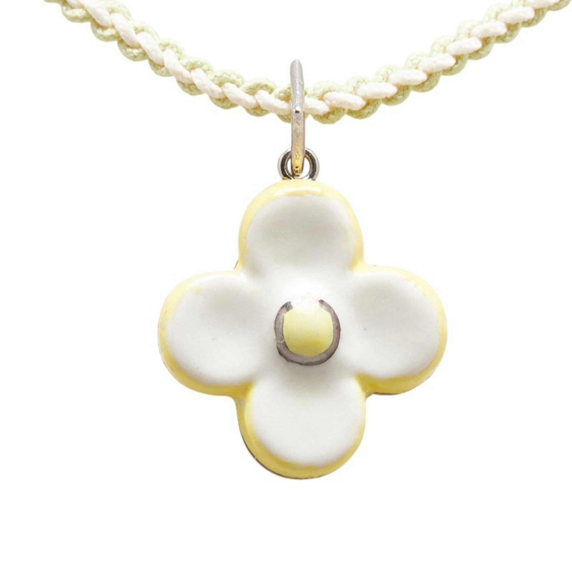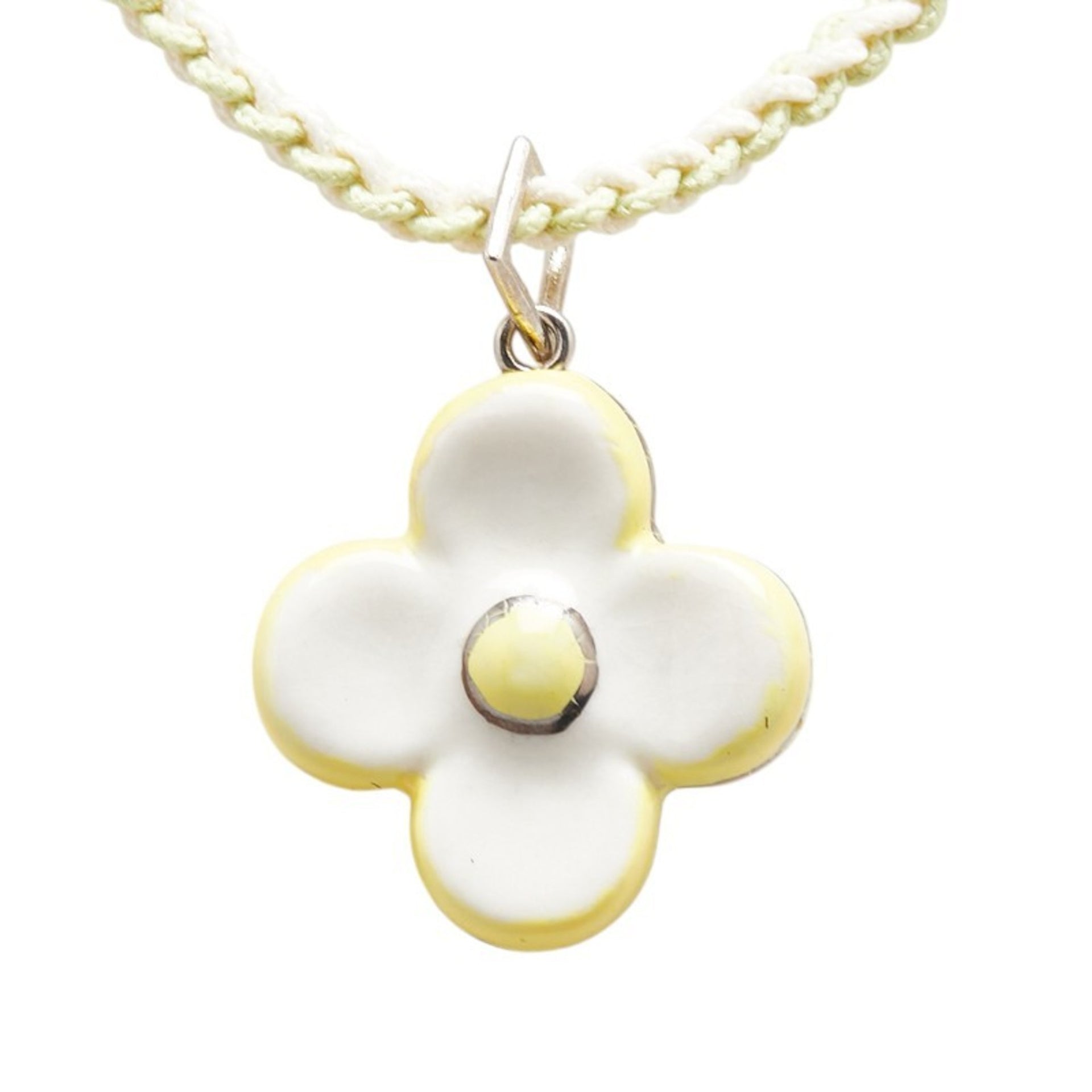 Louis Vuitton Collier Fleur Flower Motif Pendant Necklace/Choker in White and Yellow Ceramic Cotton for Women
