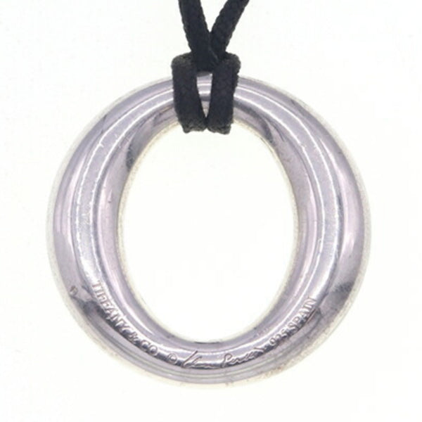Tiffany & Co. Elsa Peretti Sebiana sterling silver 925 fabric cord pendant choker oval necklace for women. TIFFANY CO.