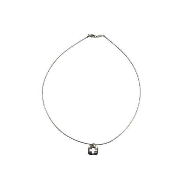 Tiffany & Co. Open Cross Square 925 Sterling Silver Pendant Necklace 0938