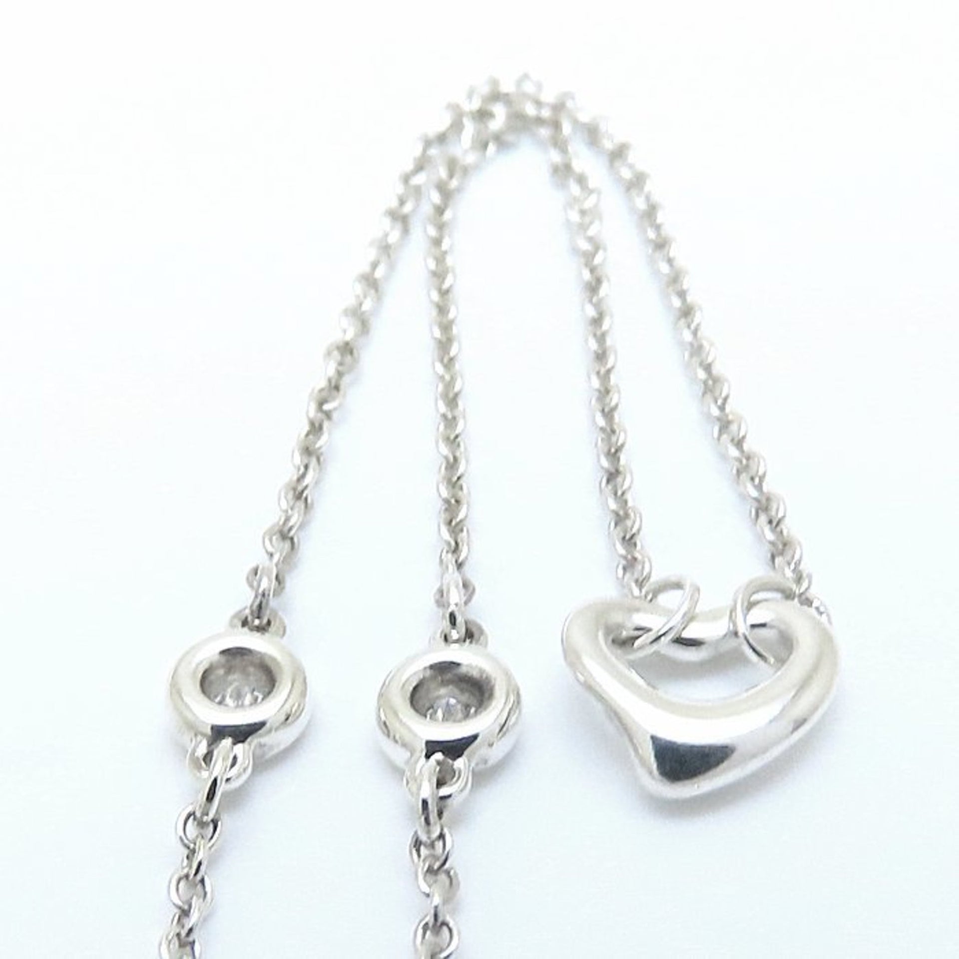 TIFFANY & Co. Tiffany Heart by the Yard Necklace in Sterling Silver with Two Diamonds, Elsa Peretti, Women\'s, 294240