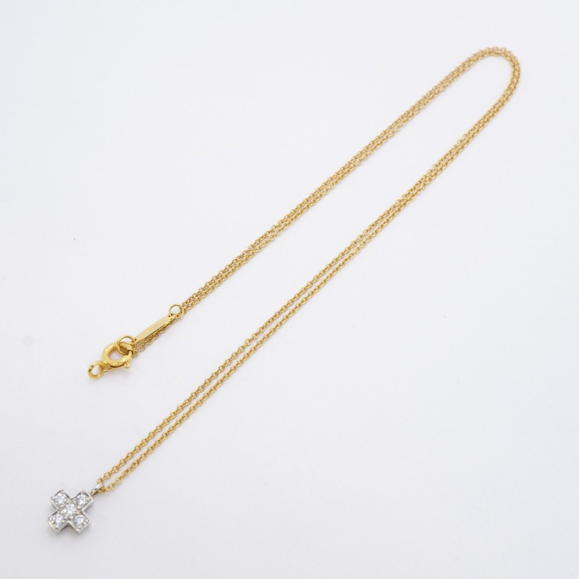 Tiffany Necklace Crucy Form 5PD 18KYG Yellow Gold Pt950 Platinum Diamond Women\'s